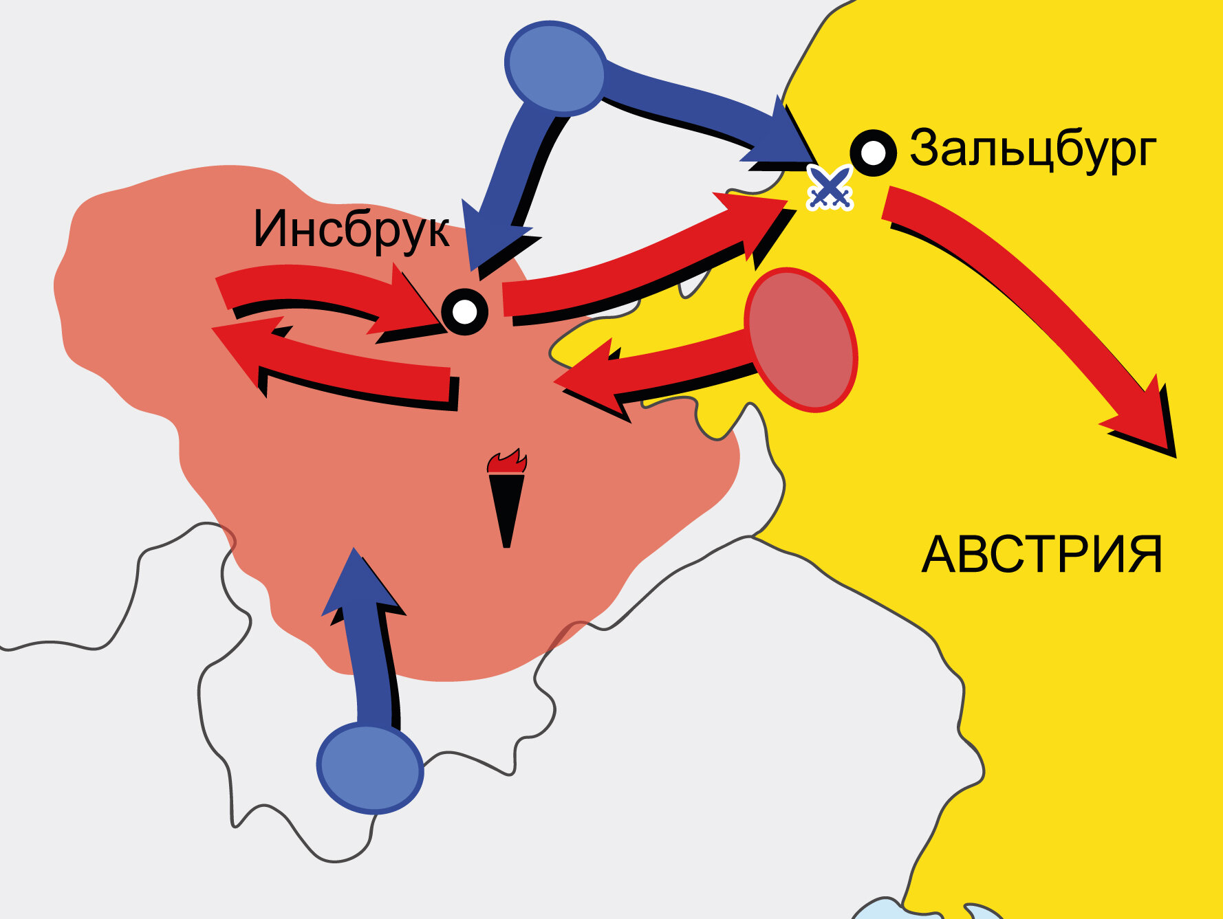 Война пятой антифранцузской коалиции 1809 г. Карта кампании в Тироле в 1809 г.