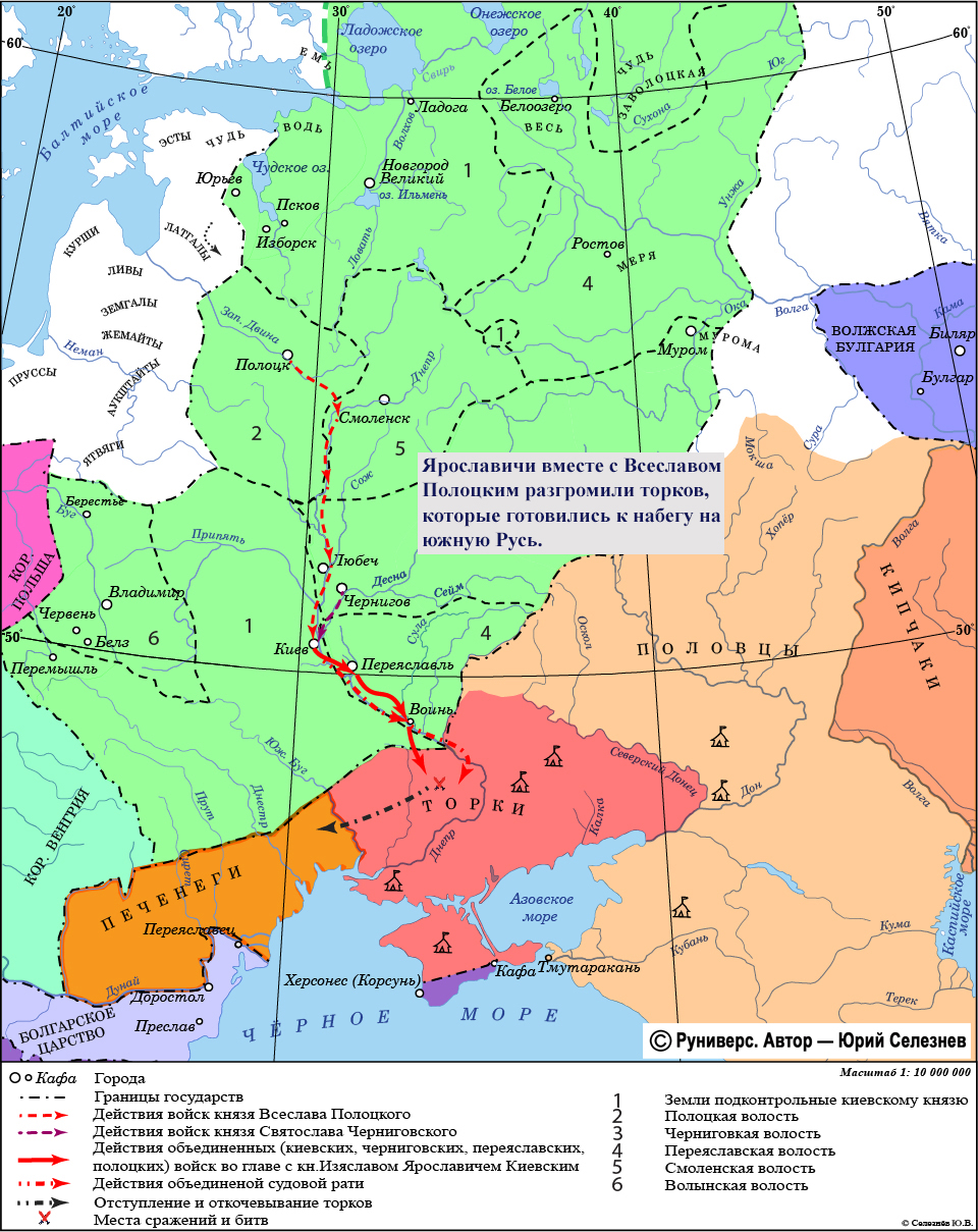 Ярославичи вместе с Всеславом Полоцким разгромили торков, которые готовились к набегу на южную