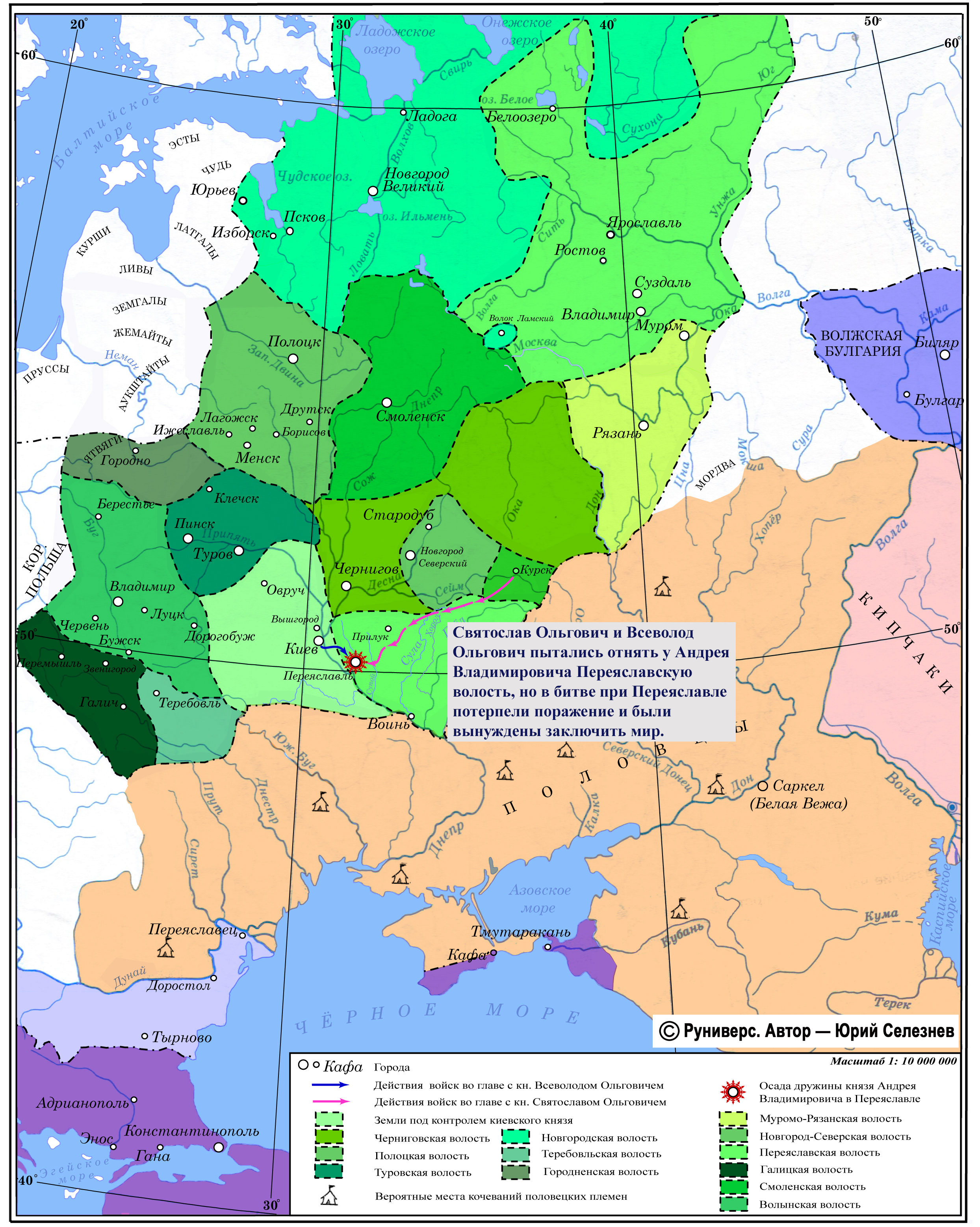 Святослав Ольгович и Всеволод Ольгович пытались отнять у Андрея Владимировича Переяславскую волость, но в битве при Переяславле потерпели поражение и были вынуждены заключить мир.