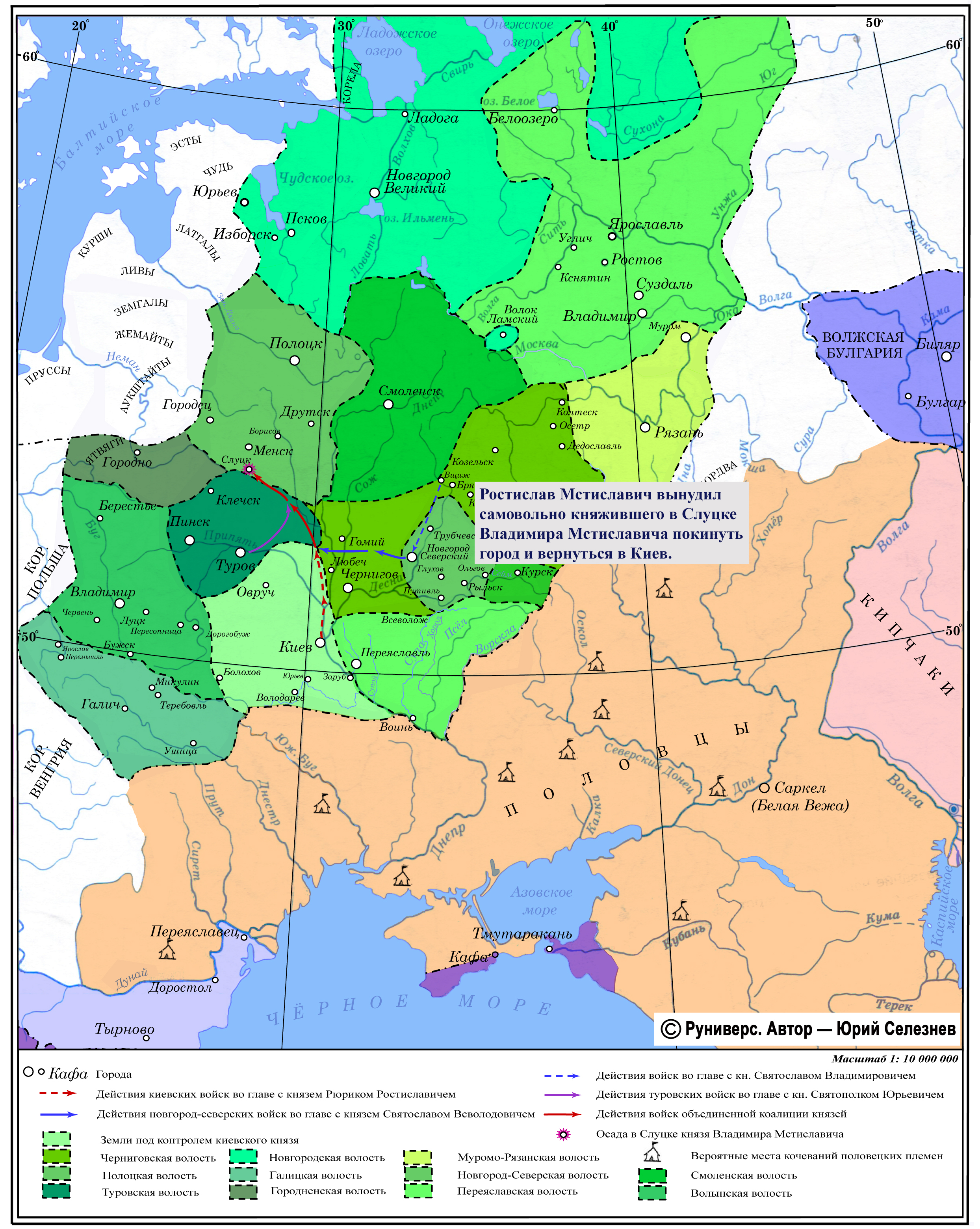 Ростислав Мстиславич вынудил самовольно княжившего в Слуцке Владимира Мстиславича покинуть город и вернуться в Киев.