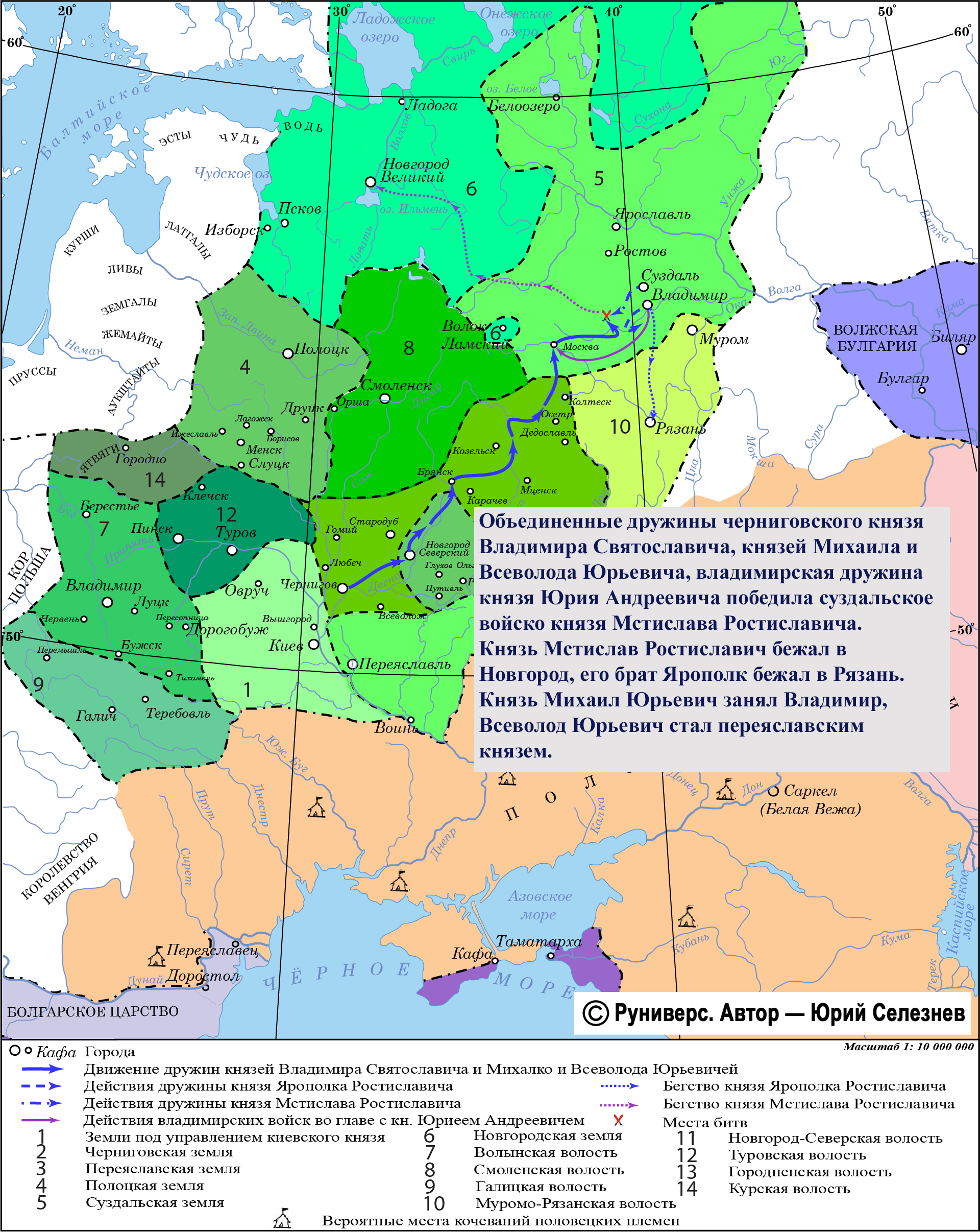 Князь Михаил Юрьевич занял Владимир, Всеволод Юрьевич стал переяславским князем.
