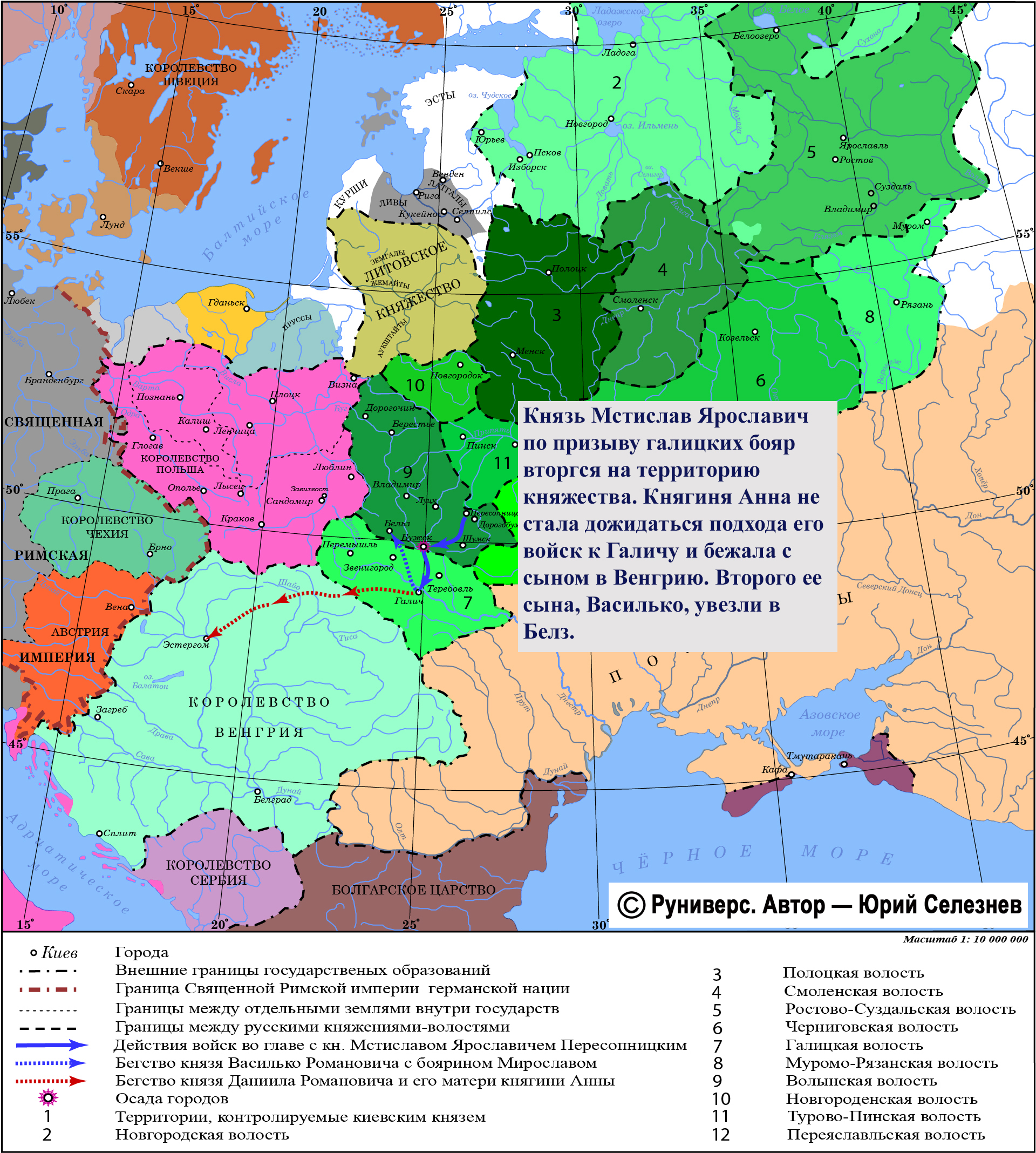 Князь Мстислав Ярославич по призыву галицких бояр вторгся на территорию княжества. Княгиня Анна не стала дожидаться подхода его войск к Галичу и бежала с сыном в Венгрию. Второго ее сына, Василько, увезли в Белз.