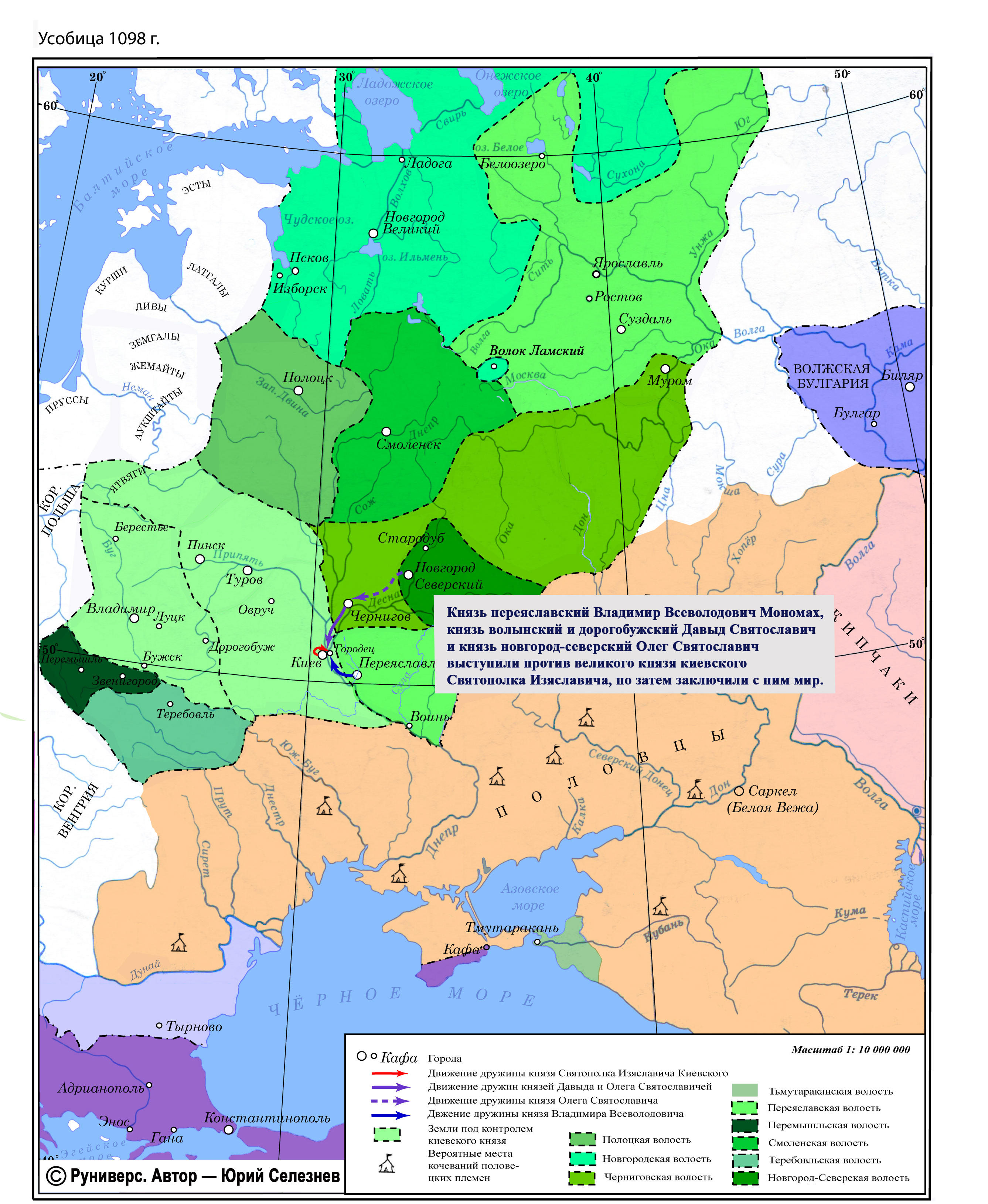 Князь переяславский Владимир Всеволодович Мономах, князь волынский и дорогобужский Давыд Святославич и князь новгород-северский Олег Святославич выступили против великого князя киевского Святополка Изяславича, но затем заключили с ним мир.