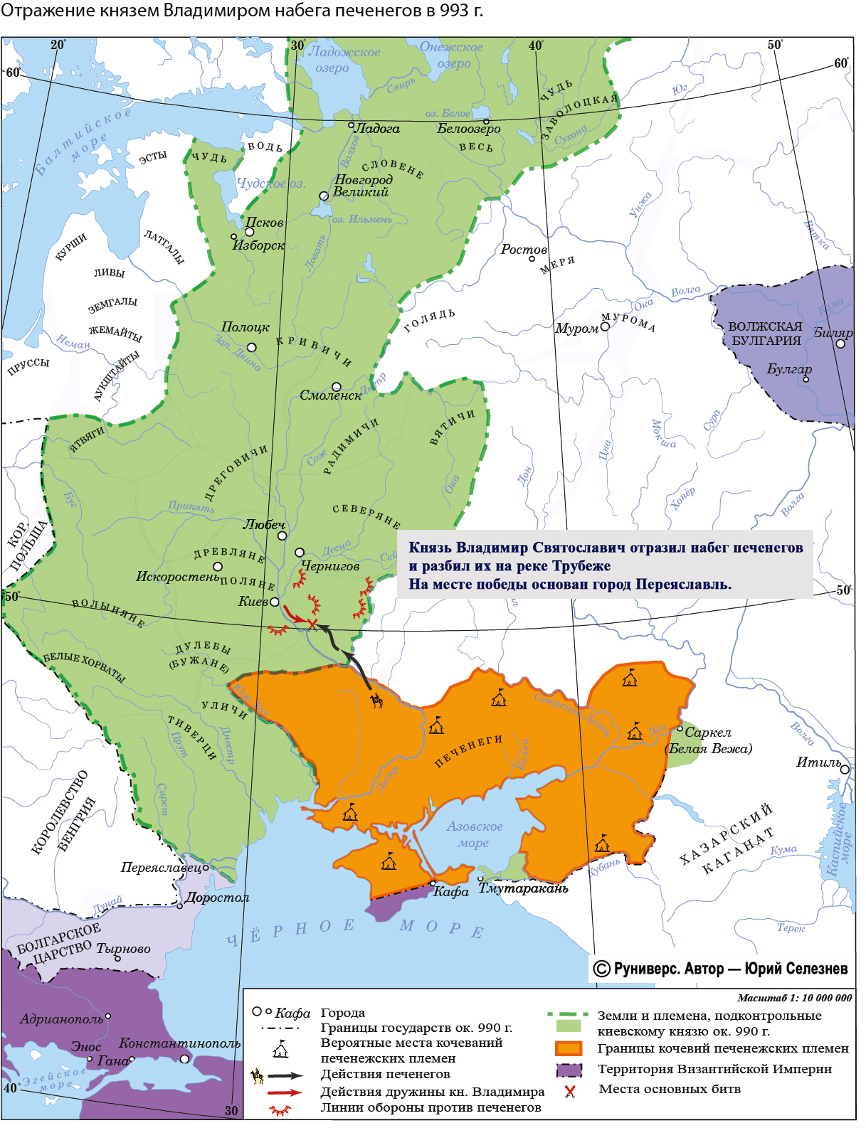 Князь Владимир Святославич отразил набег печенегов и разбил их на реке Трубеже. На месте победы