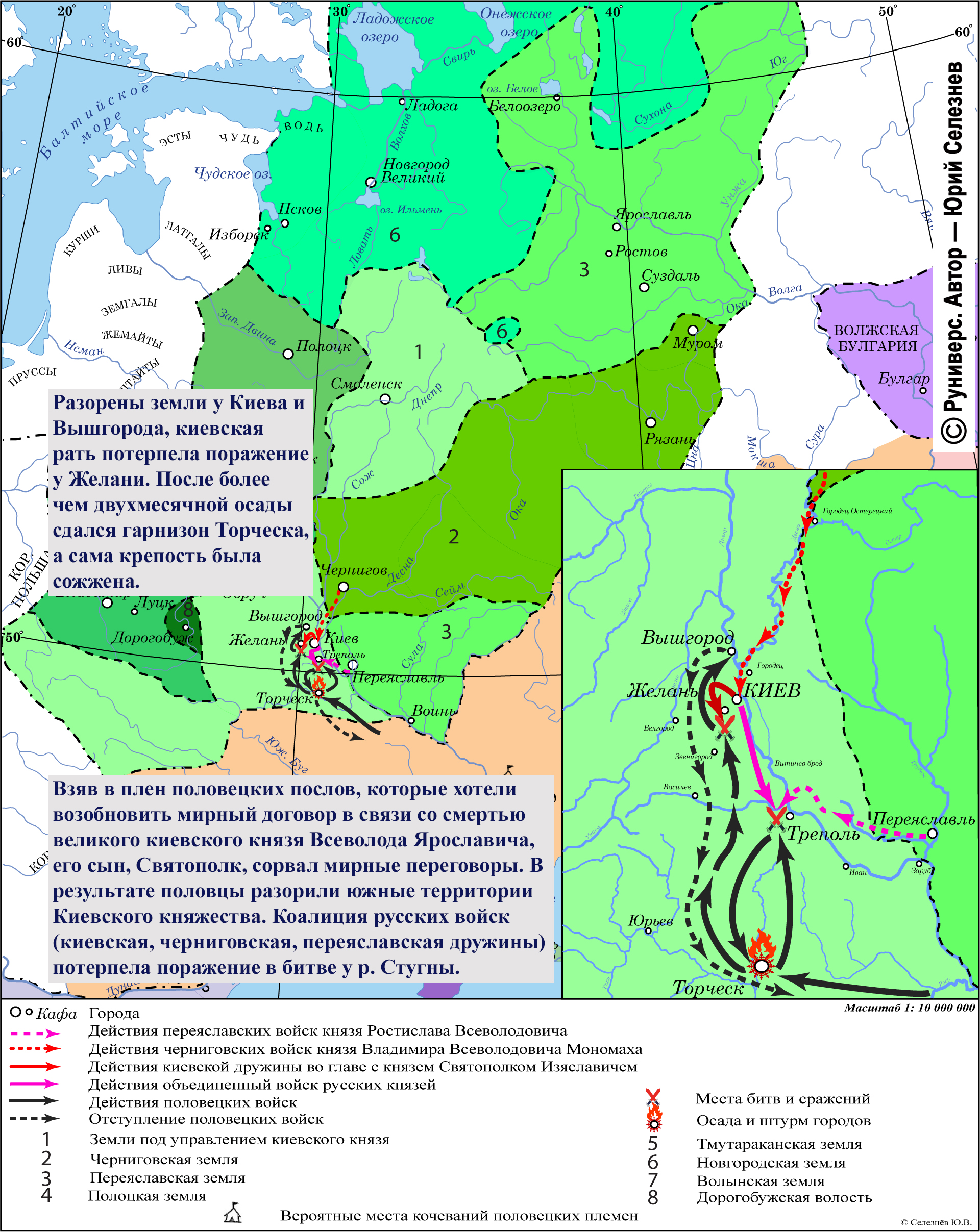 Разорены земли у Киева и Вышгорода, киевская рать потерпела поражение у Желани. После более