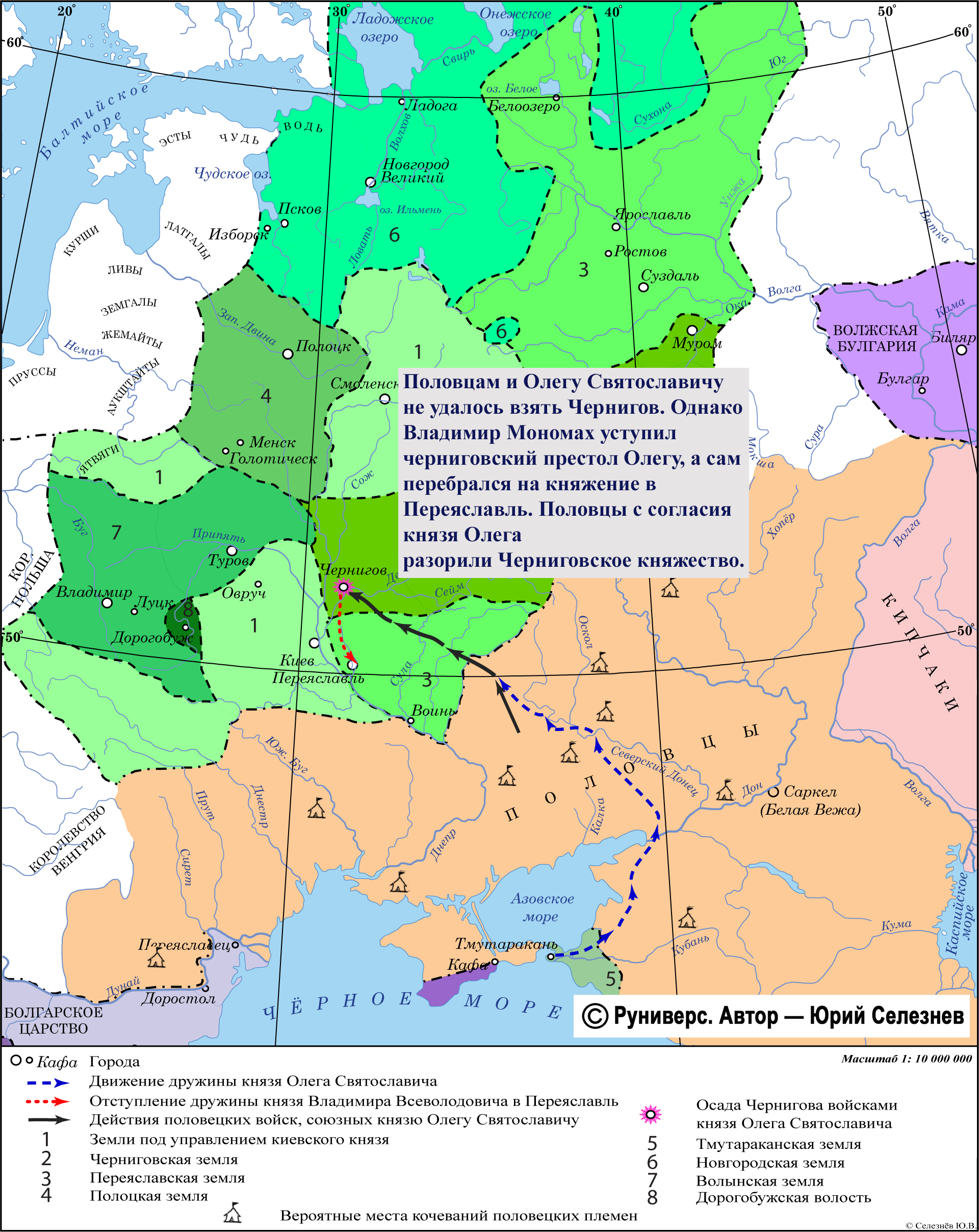 Половцам и Олегу Святославичу не удалось взять Чернигов. Однако Владимир Мономах уступил черни-