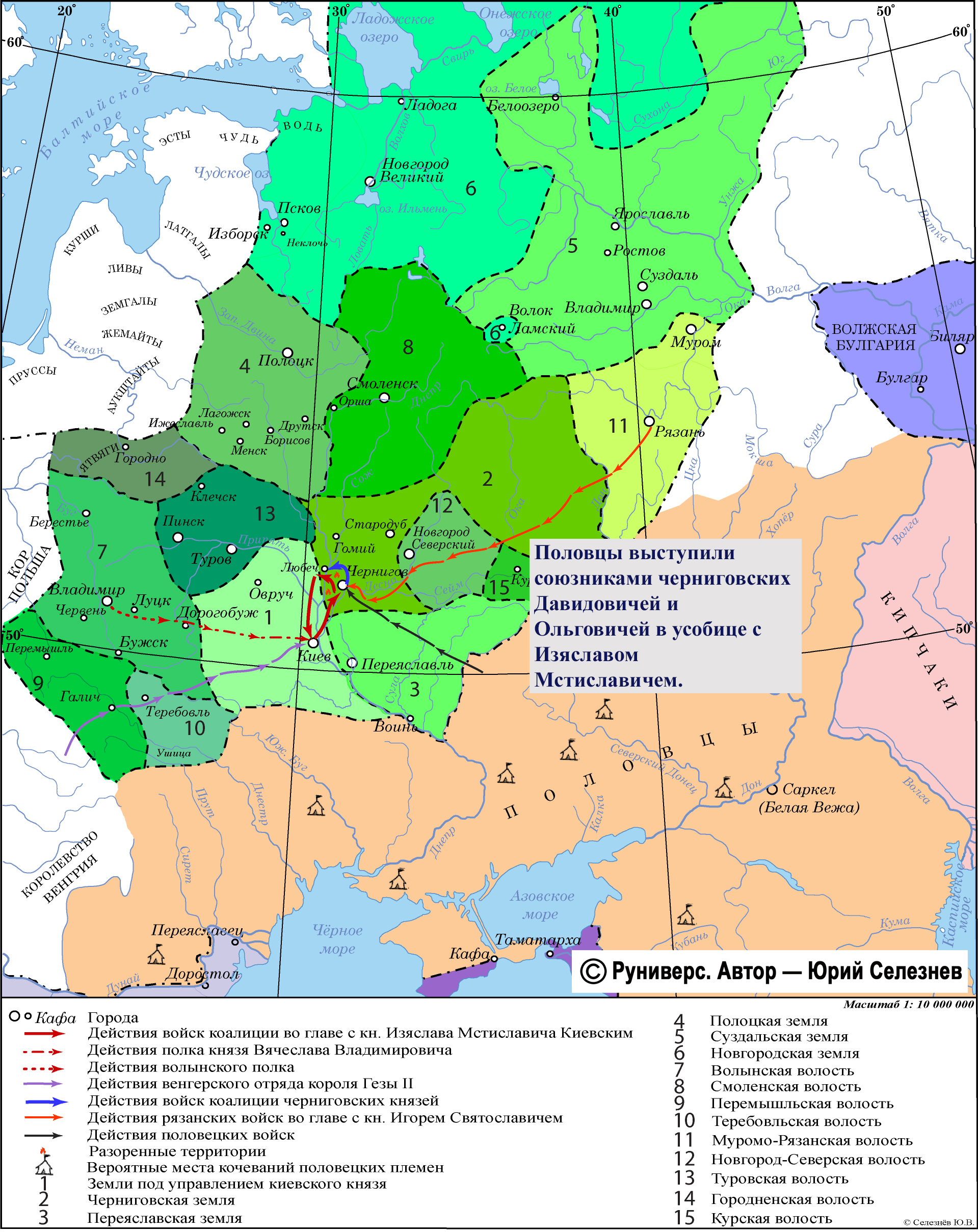 Половцы выступили союзниками черниговских Давидовичей и Ольговичей в усобице с Изяславом Мстиславичем.