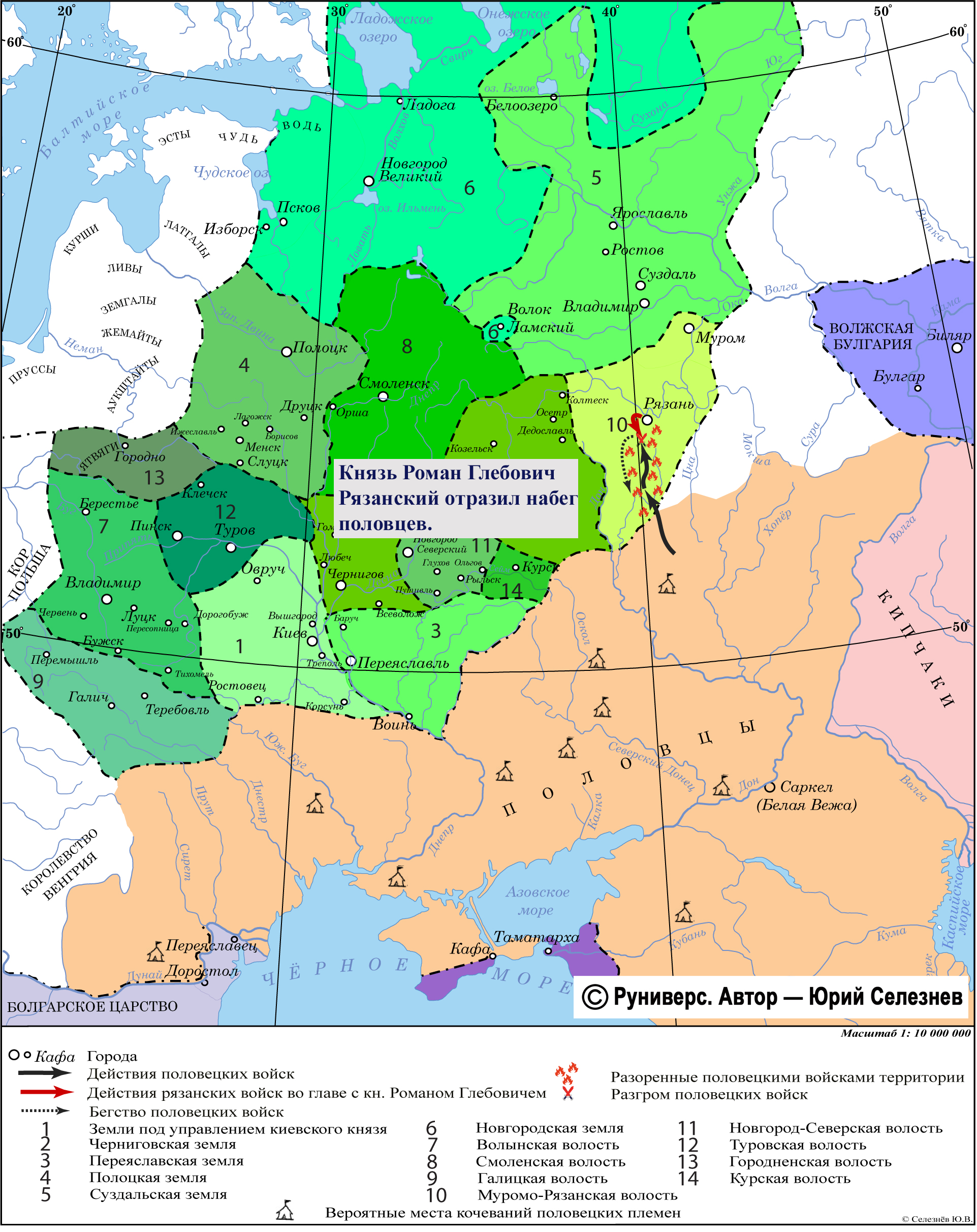 Князь Роман Глебович Рязанский отразил набег половцев.