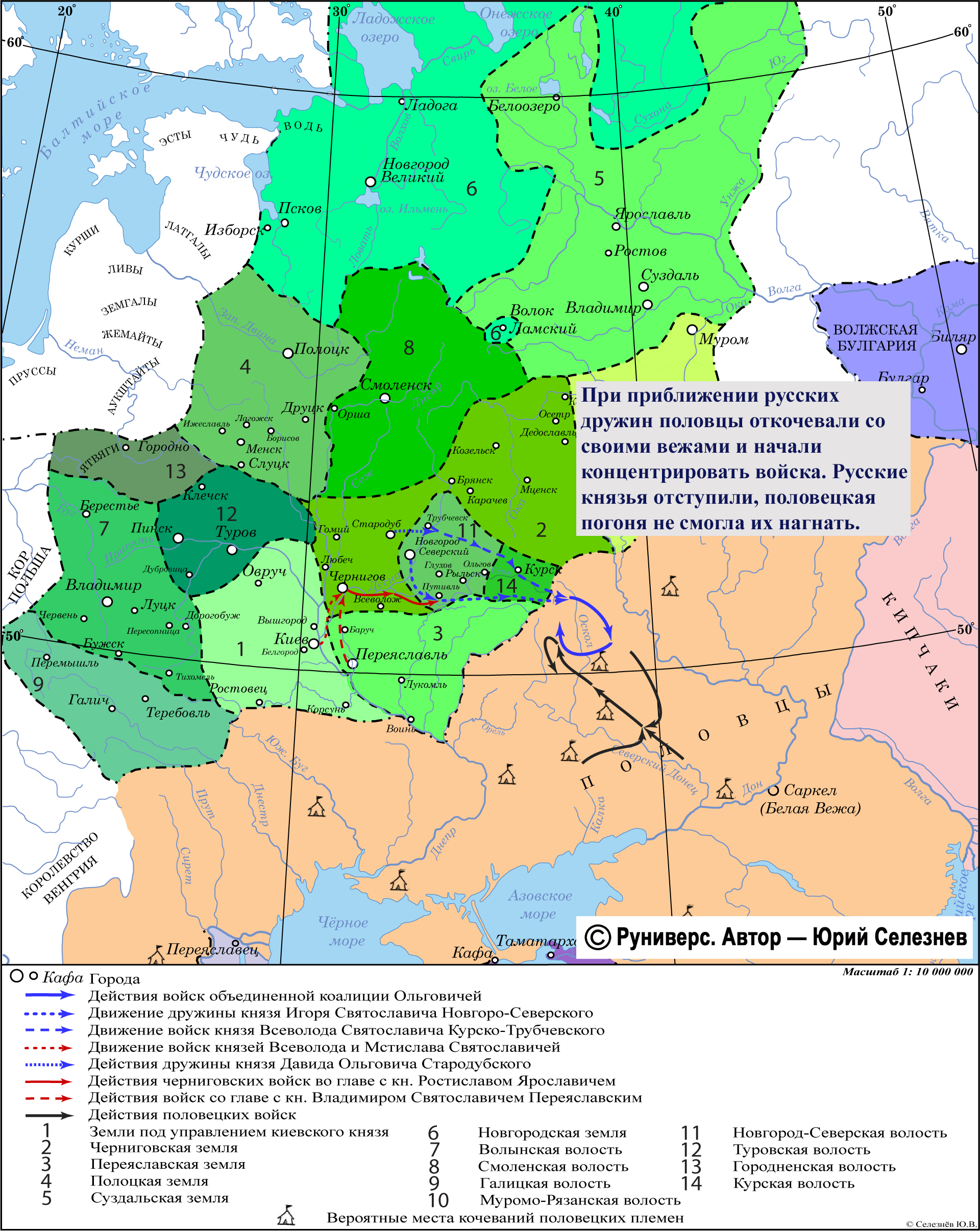 При приближении русских дружин половцы откочевали со своими вежами и начали концентрировать войска. Русские князья отступили, половецкая погоня не смогла их нагнать.