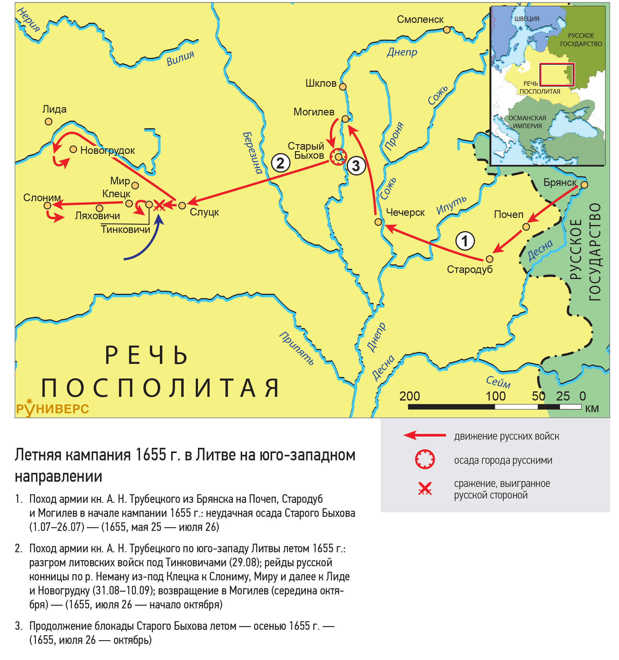 1. Поход армии кн. А. Н. Трубецкого из Брянска на Почеп, Стародуб и Могилев в начале кампании 1655 г.: неудачная осада Старого Быхова (1.07–26.07) — (1655, мая 25 — июля 26)