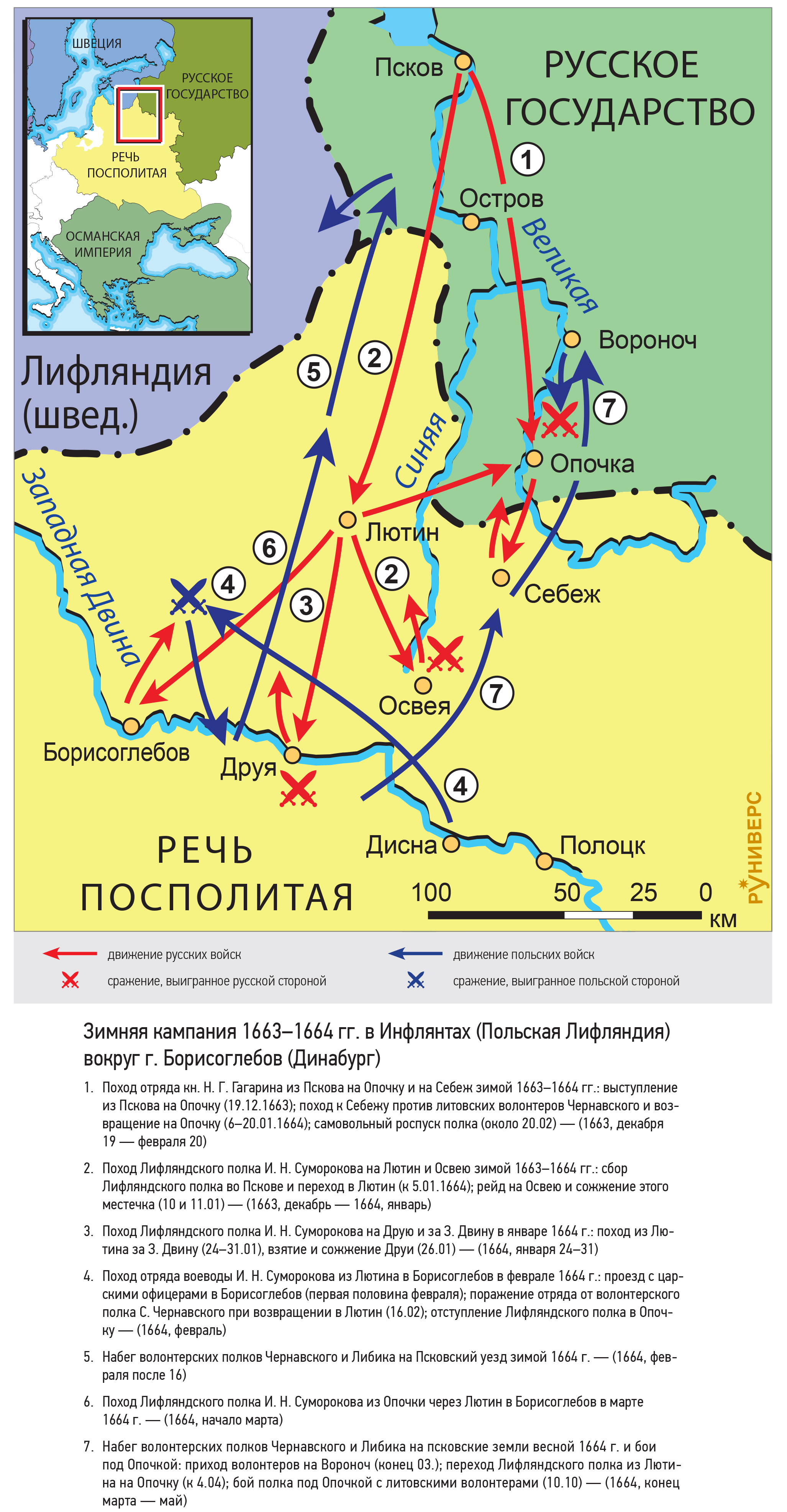 Русско-польская война 1654–1667 гг. Зимняя кампания 1663–1664 гг. в Инфлянтах (Польская Лифляндия) вокруг г. Борисоглебов (Динабург)