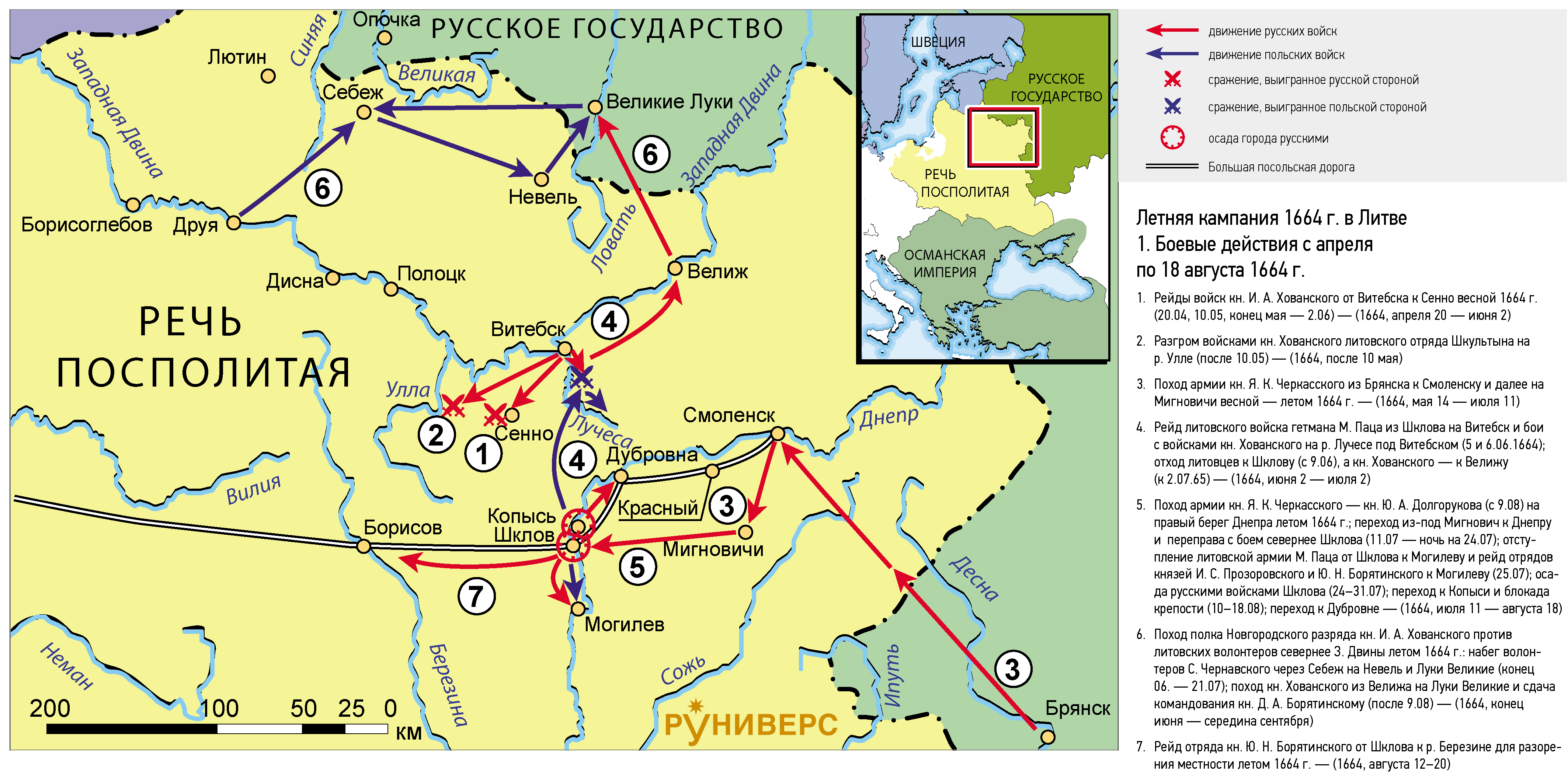 Русско-польская война 1654–1667 гг. Летняя кампания 1664 г. в Литве 1. Боевые действия с апреля по 18 августа 1664 г.