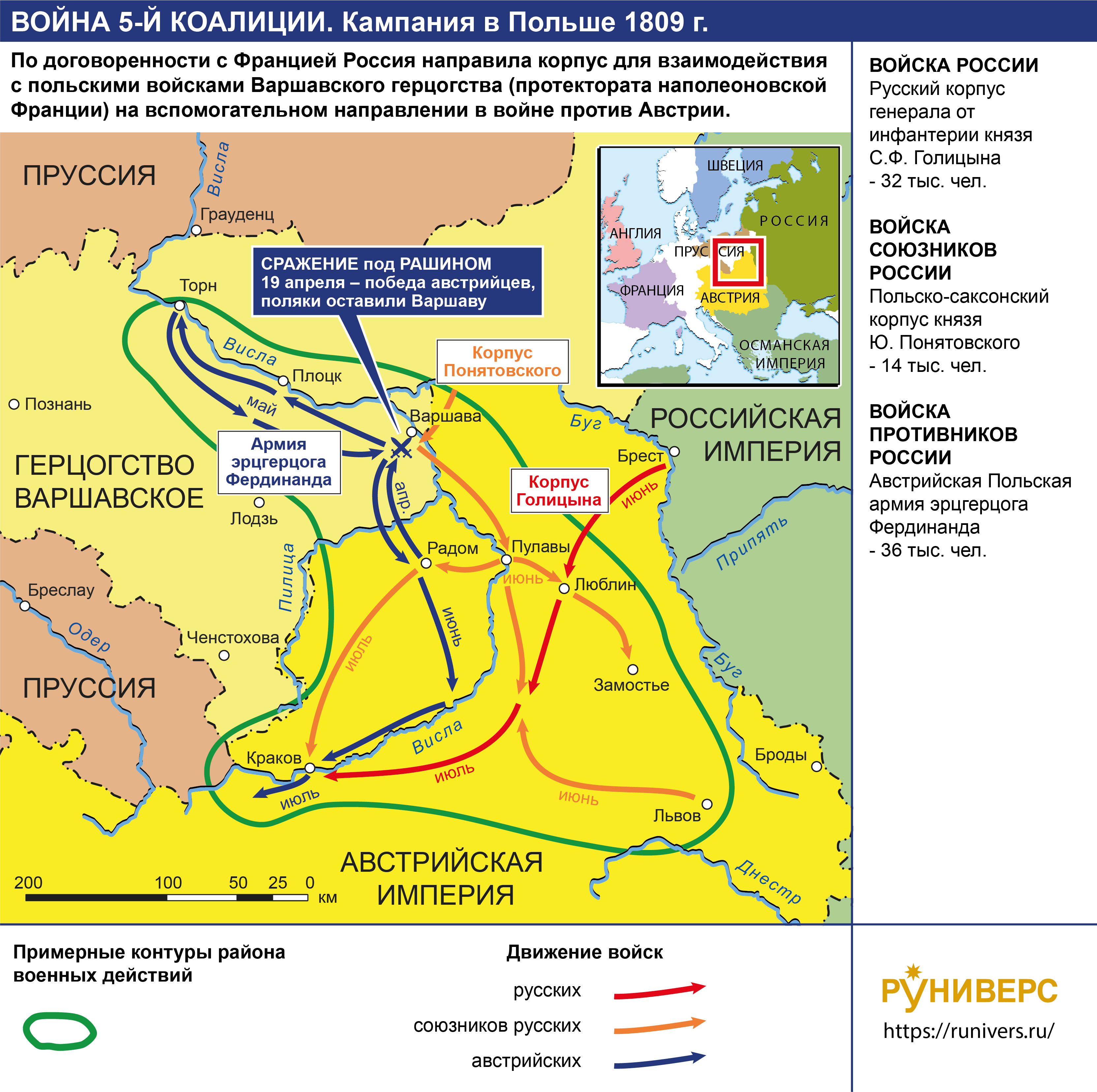 Война Пятой антифранцузской коалиции 1809 г. Кампания в Галиции 1809 г.