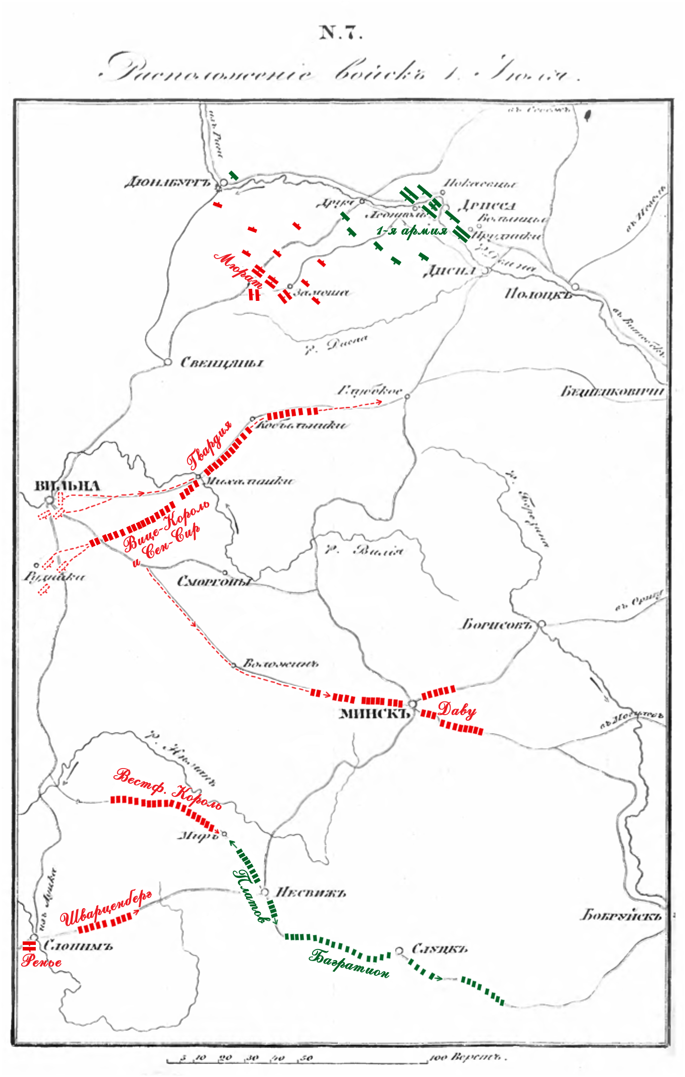 Путь отступления Наполеоновских войск и движение русских от Березины