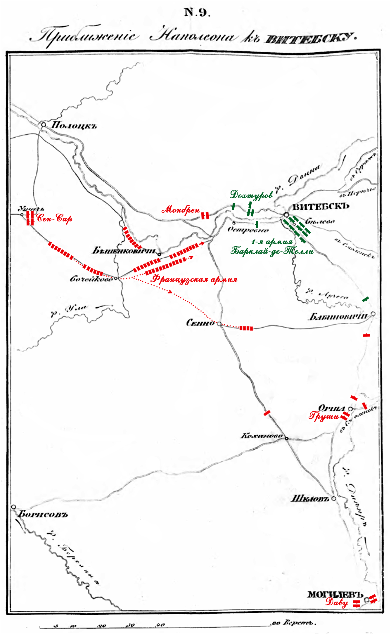 Путь отступления Наполеоновских войск и движение русских от Березины