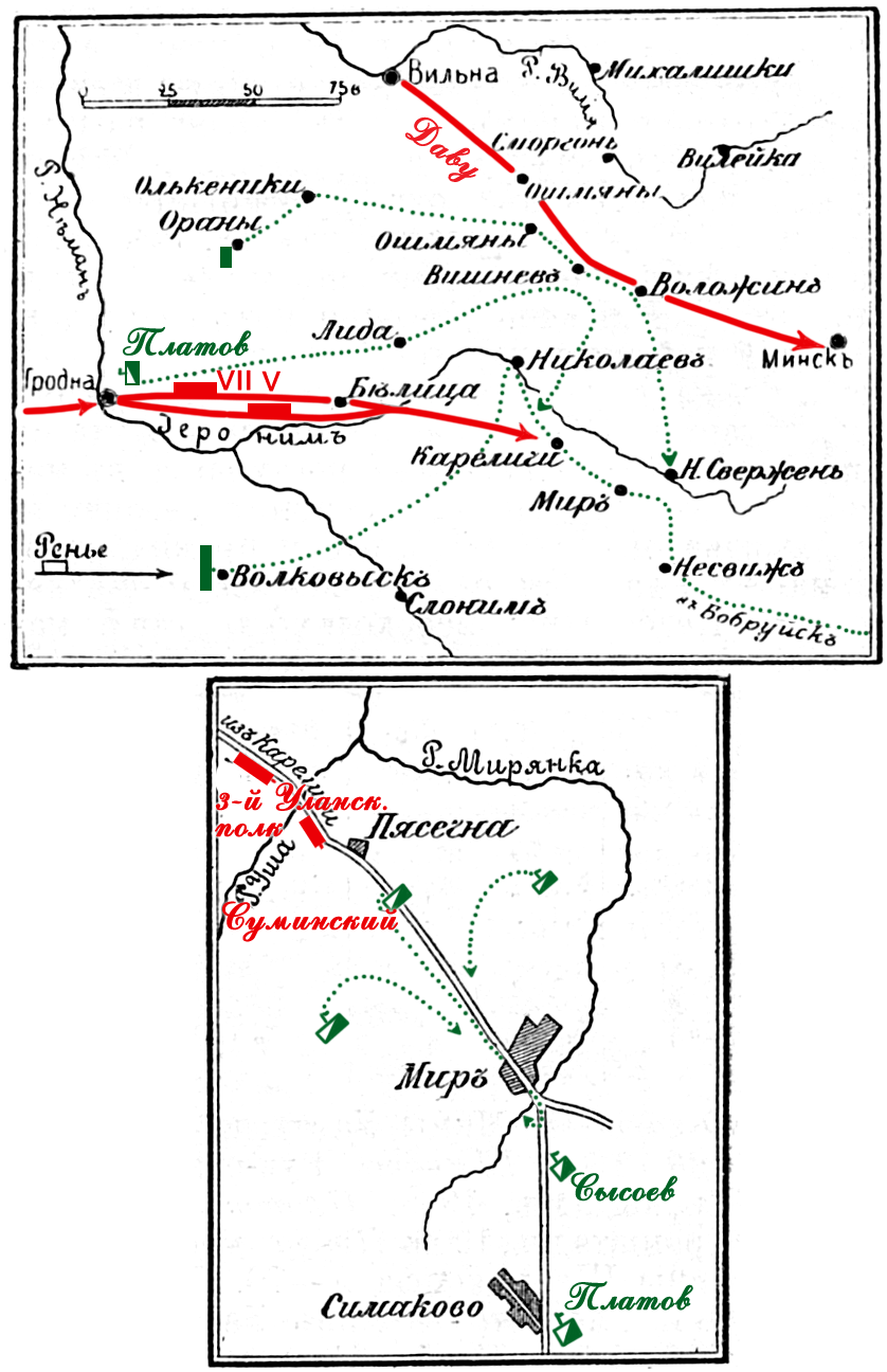 Схема боевых действий 27, 28 июня 1812г в Отечественную войну у мест. Мир.