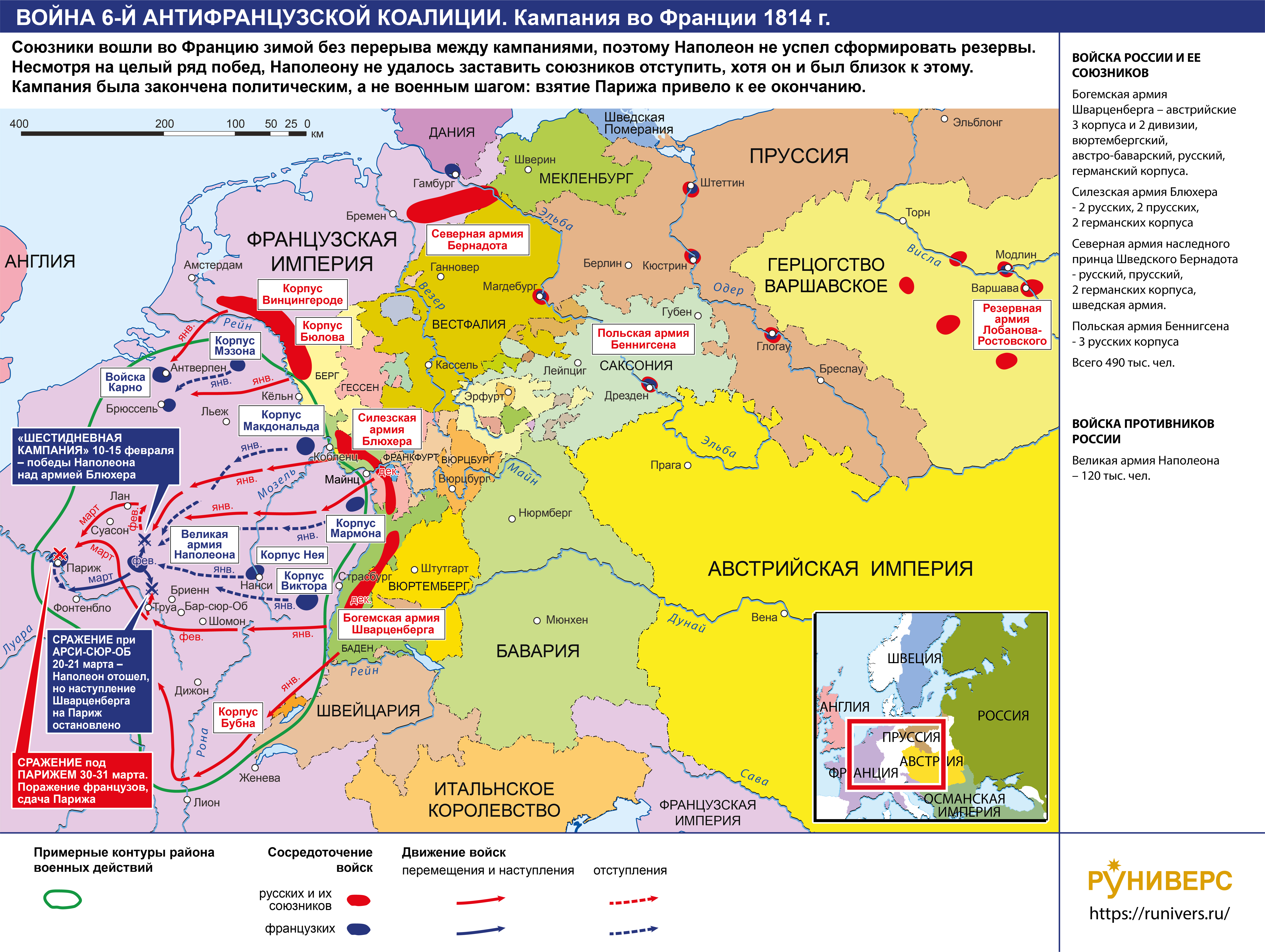 Война Шестой антифранцузской коалиции 1812-1814 гг. Заграничные походы: Кампания во Франции 1814 г.