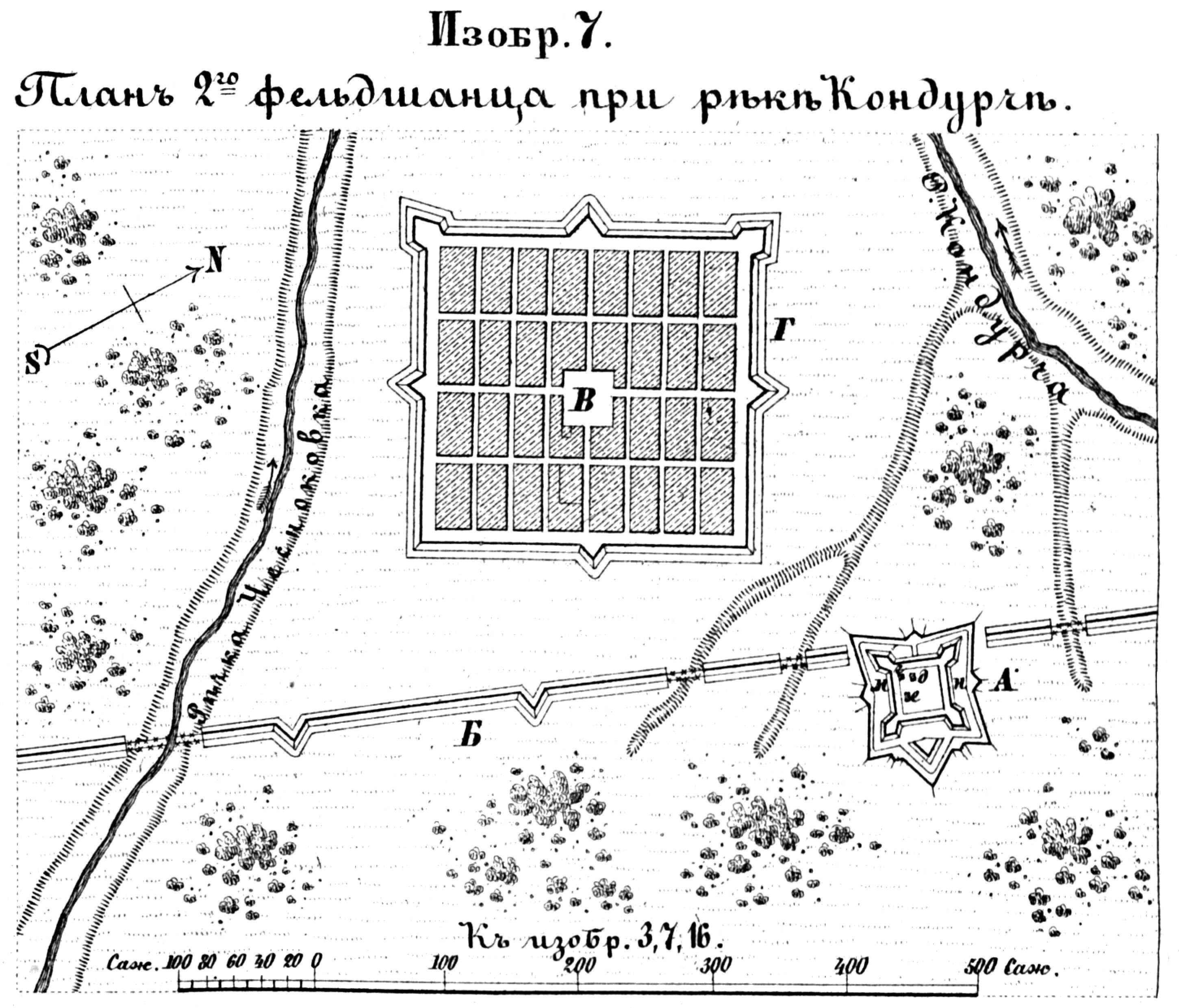 Пограничные линии. План 2-го фельдшанца при реке Кондурче