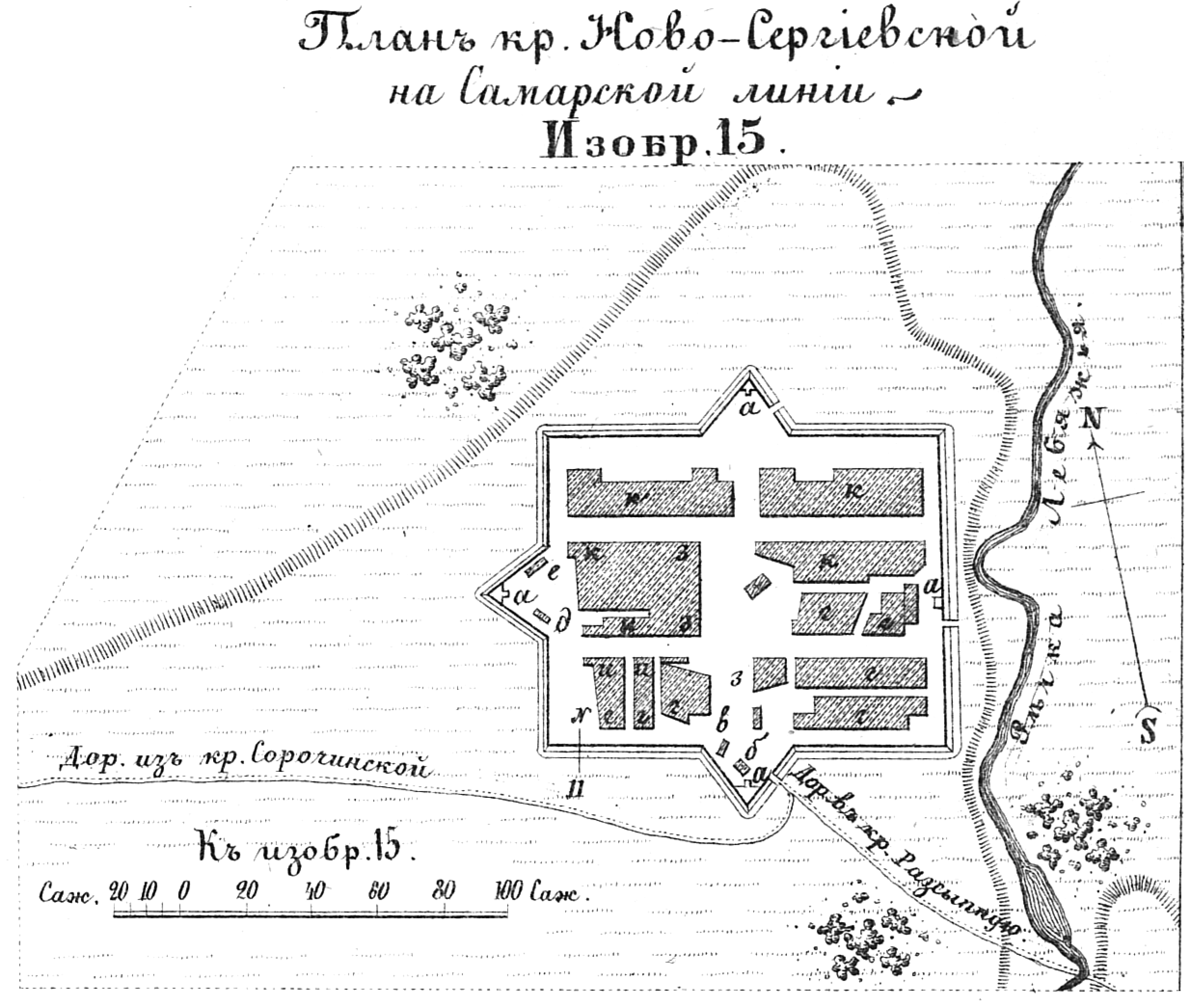 Пограничные линии. План крепости Ново-Сергиевской на Самарской линии