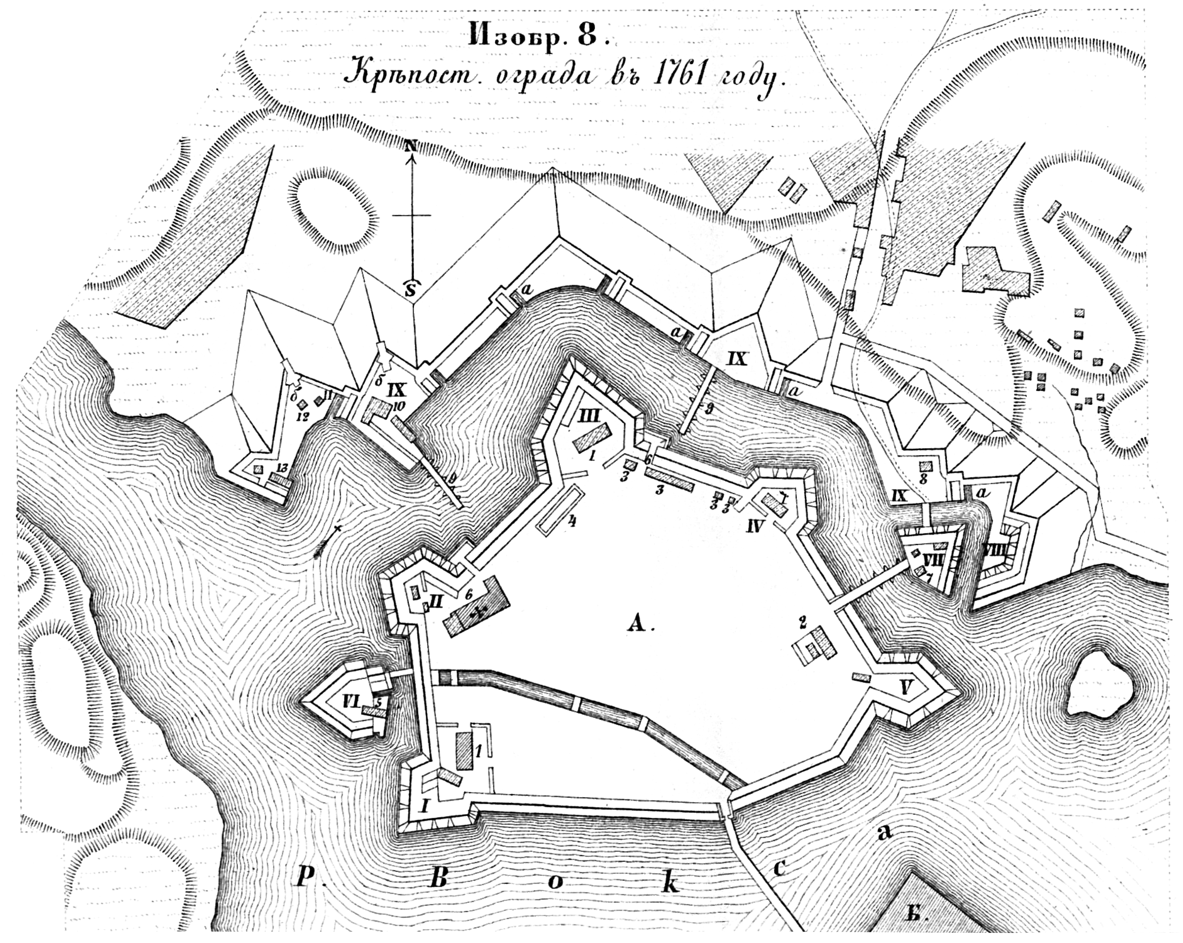 Крепость Кексгольм. Крепостная ограда в 1761 году