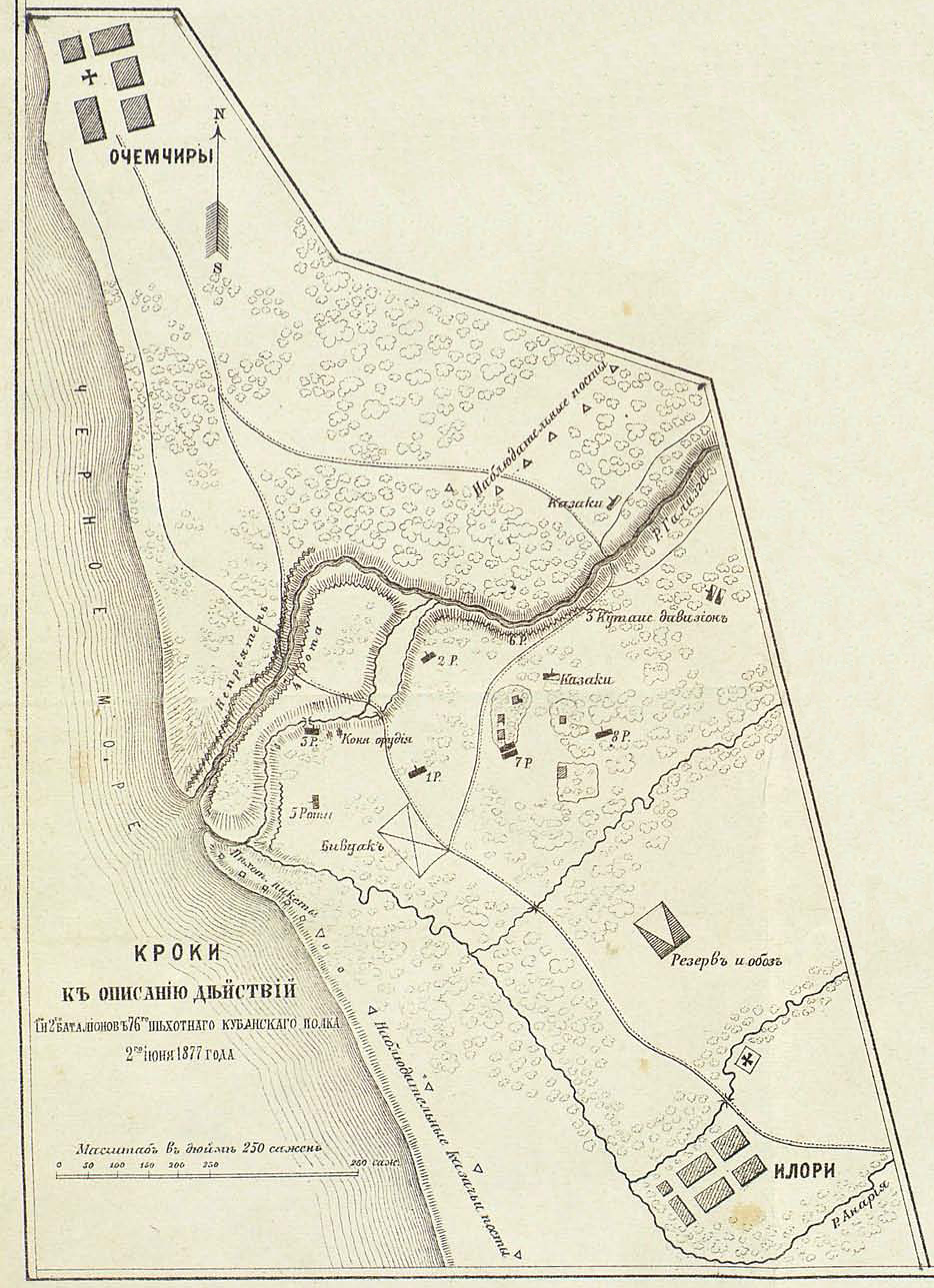 Кроки к описанию действий 2 батальона 76 пехотного Кубанского полка 2 июня 1877 года