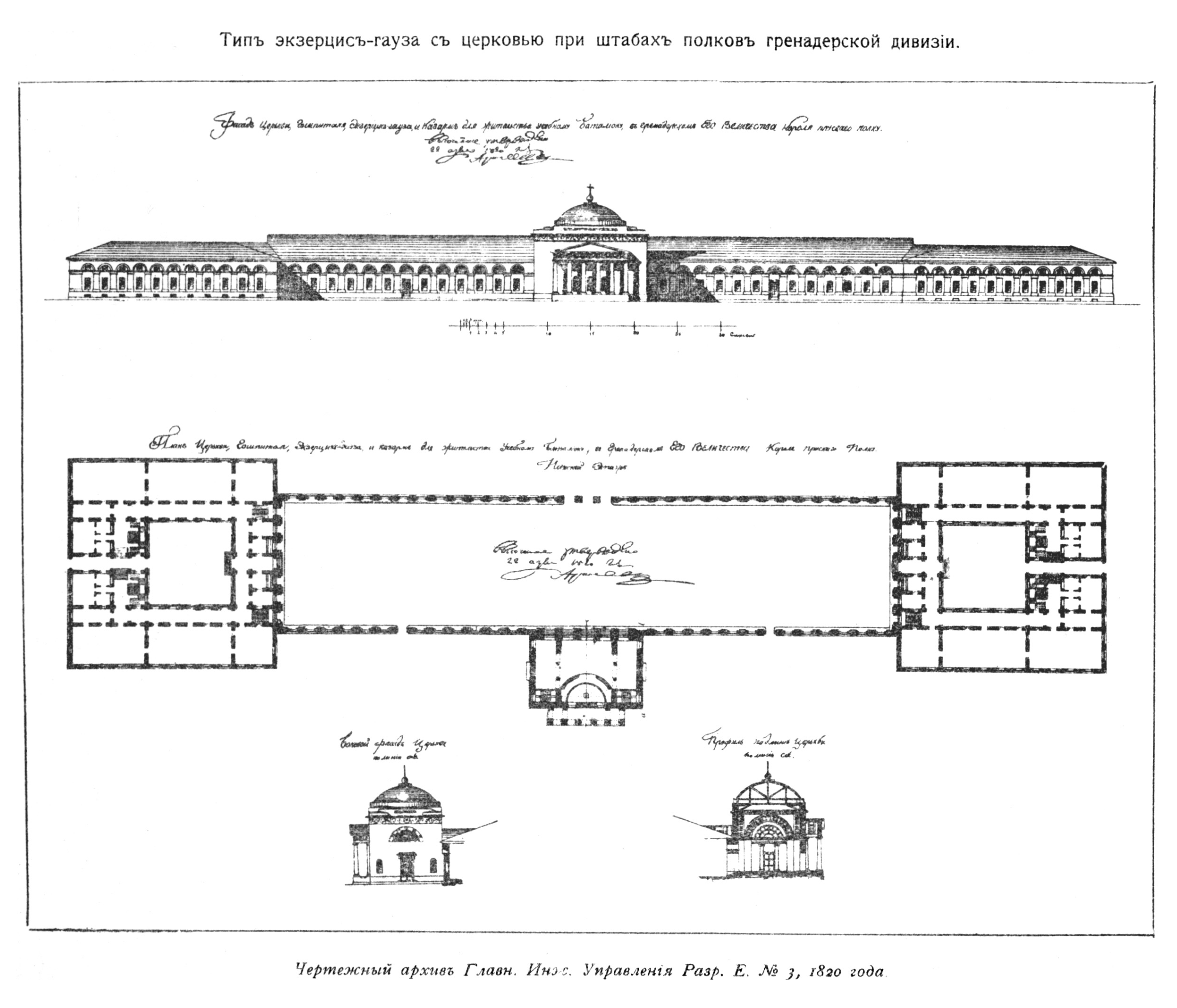 Тип экзкрцис-гауза с церковью при штабах полков Гренадерской дивизии