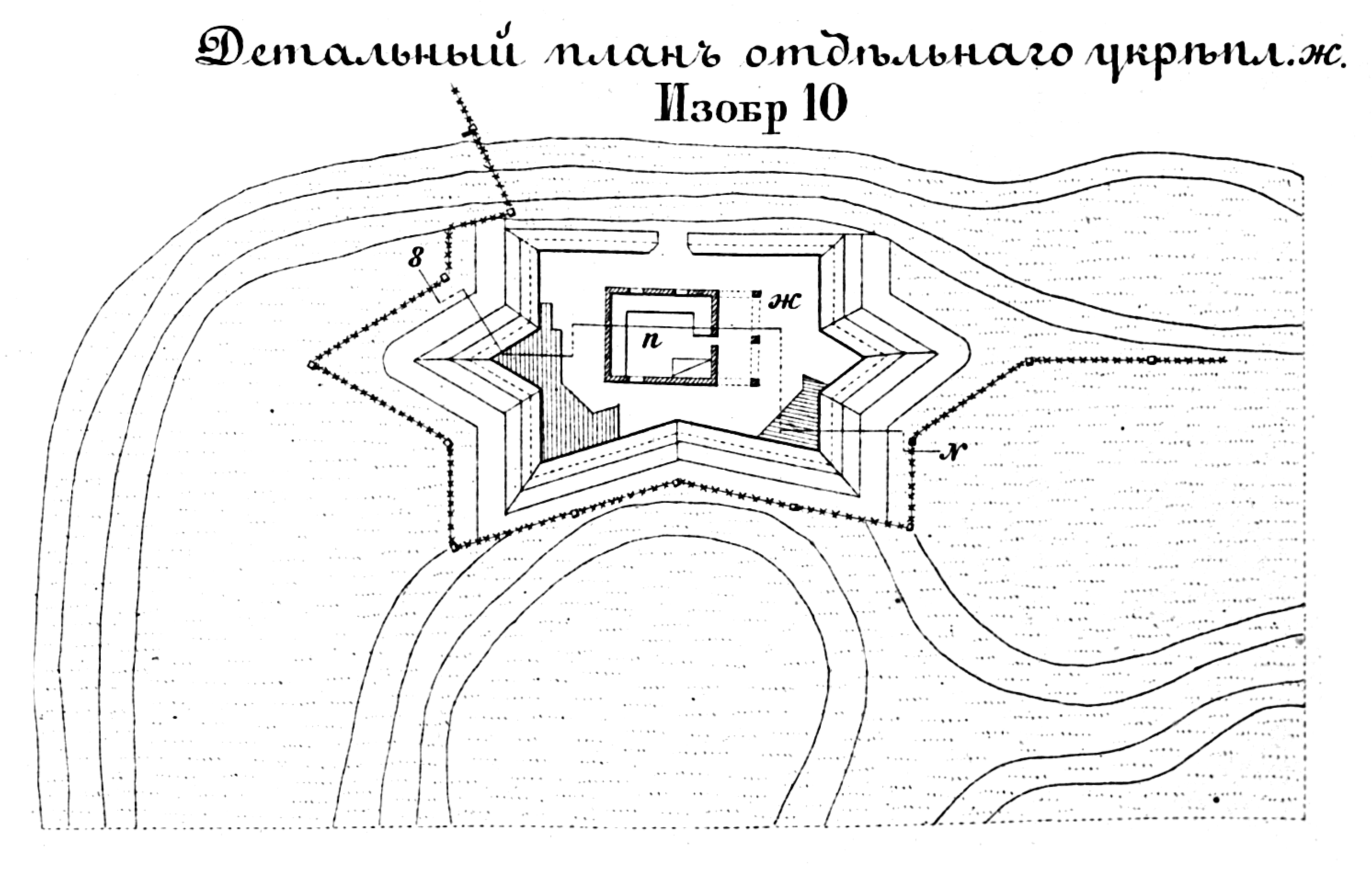 Полевые и временные укрепления. Изобр.10. Детальный план отдельного укрепления