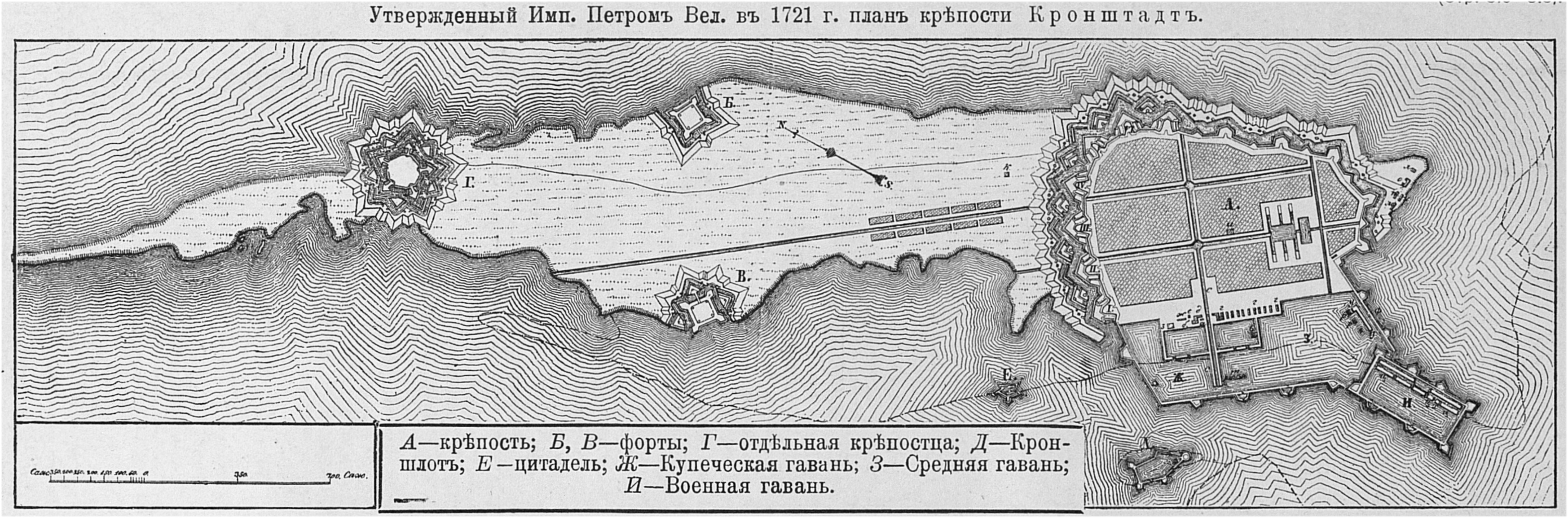 Утвержденный Императором Петром Великим в 1721 году план крепости Кронштадт
