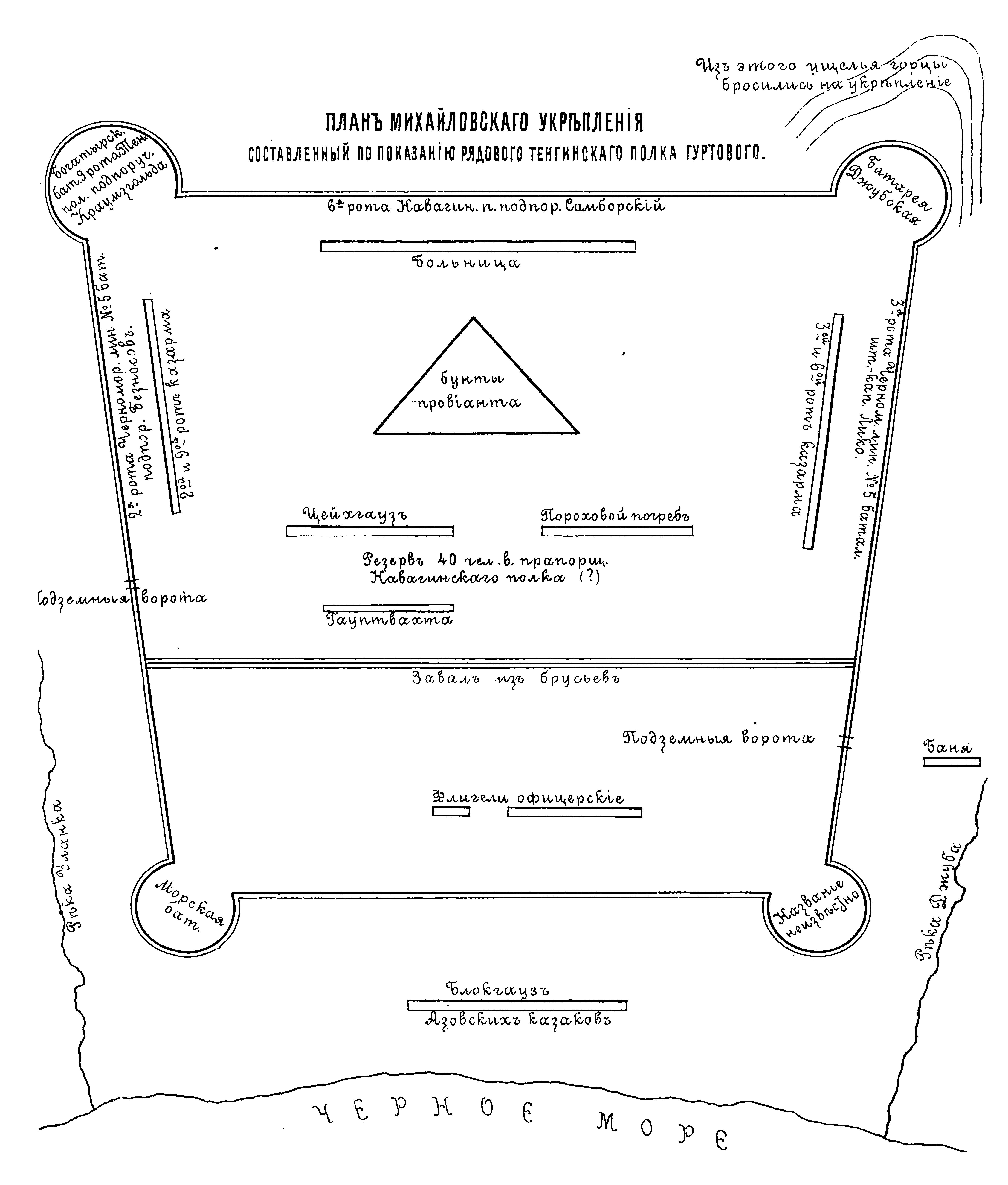 План Михайловского укрепления, составленный по показанию рядового Тенгинского полка Гуртового