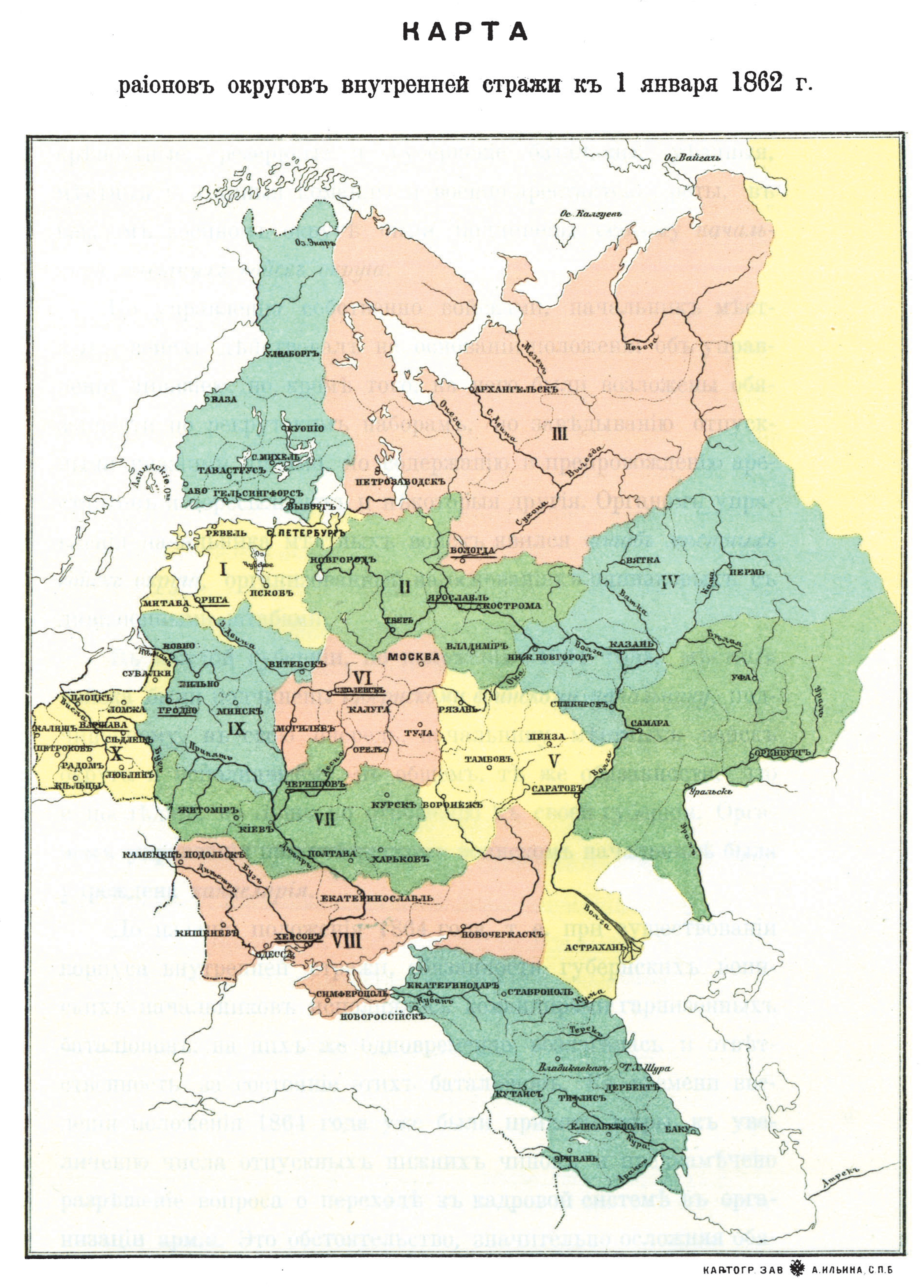 Районы округов внутренней стражи к 1 января 1862 года