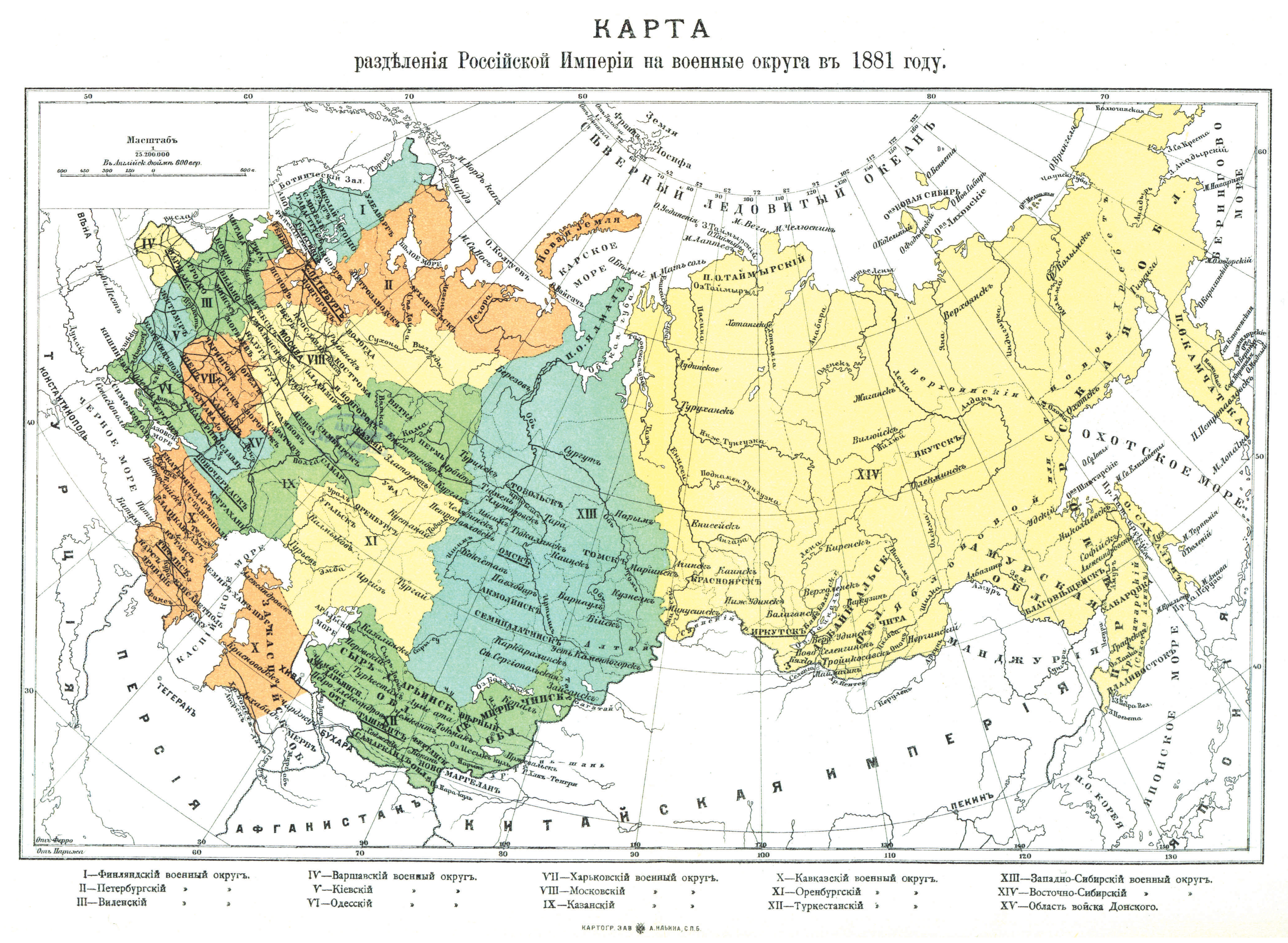 Разделение Российской Империи на военные округа в 1881 году