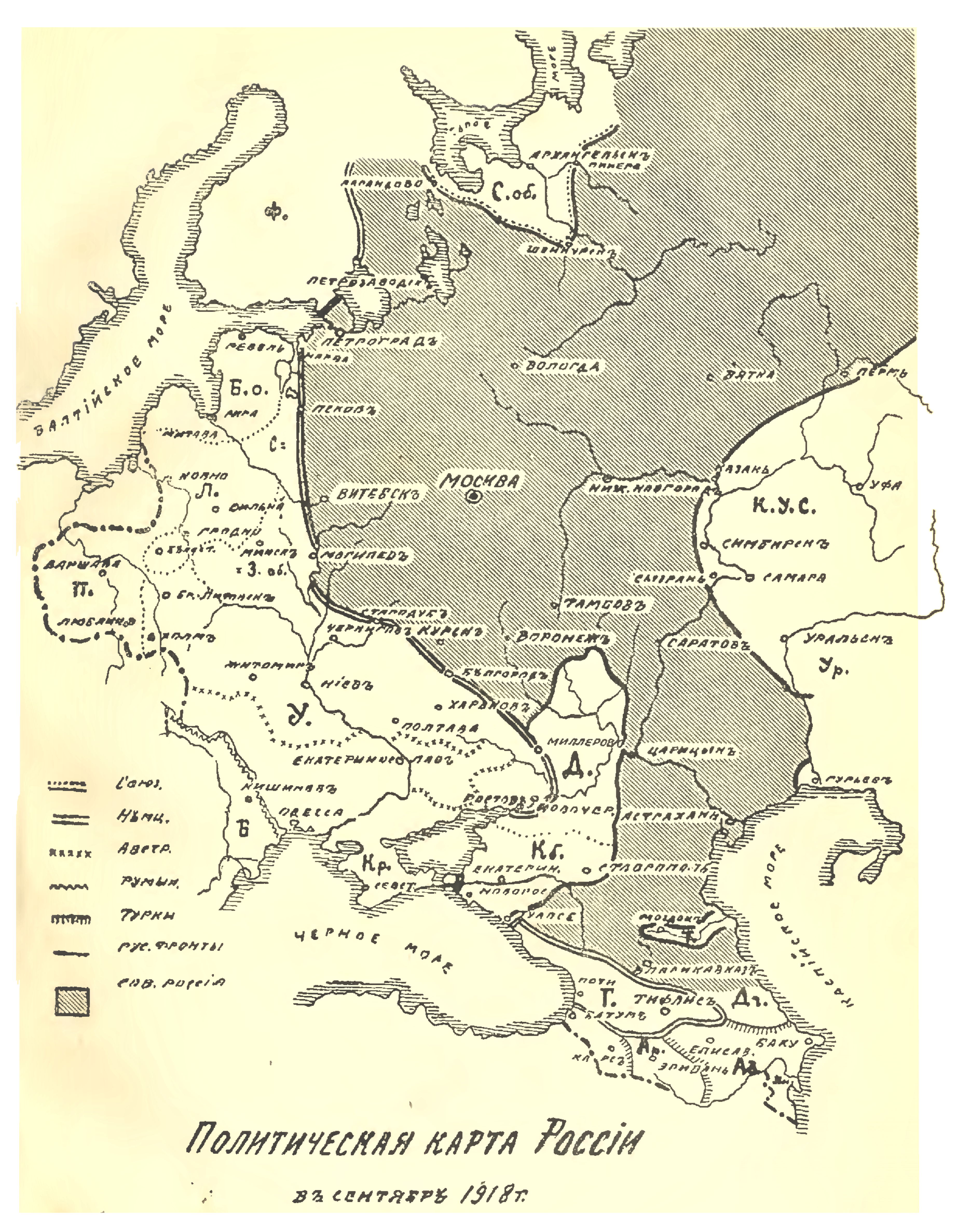 Политическая карта России в сентябре 1918 года