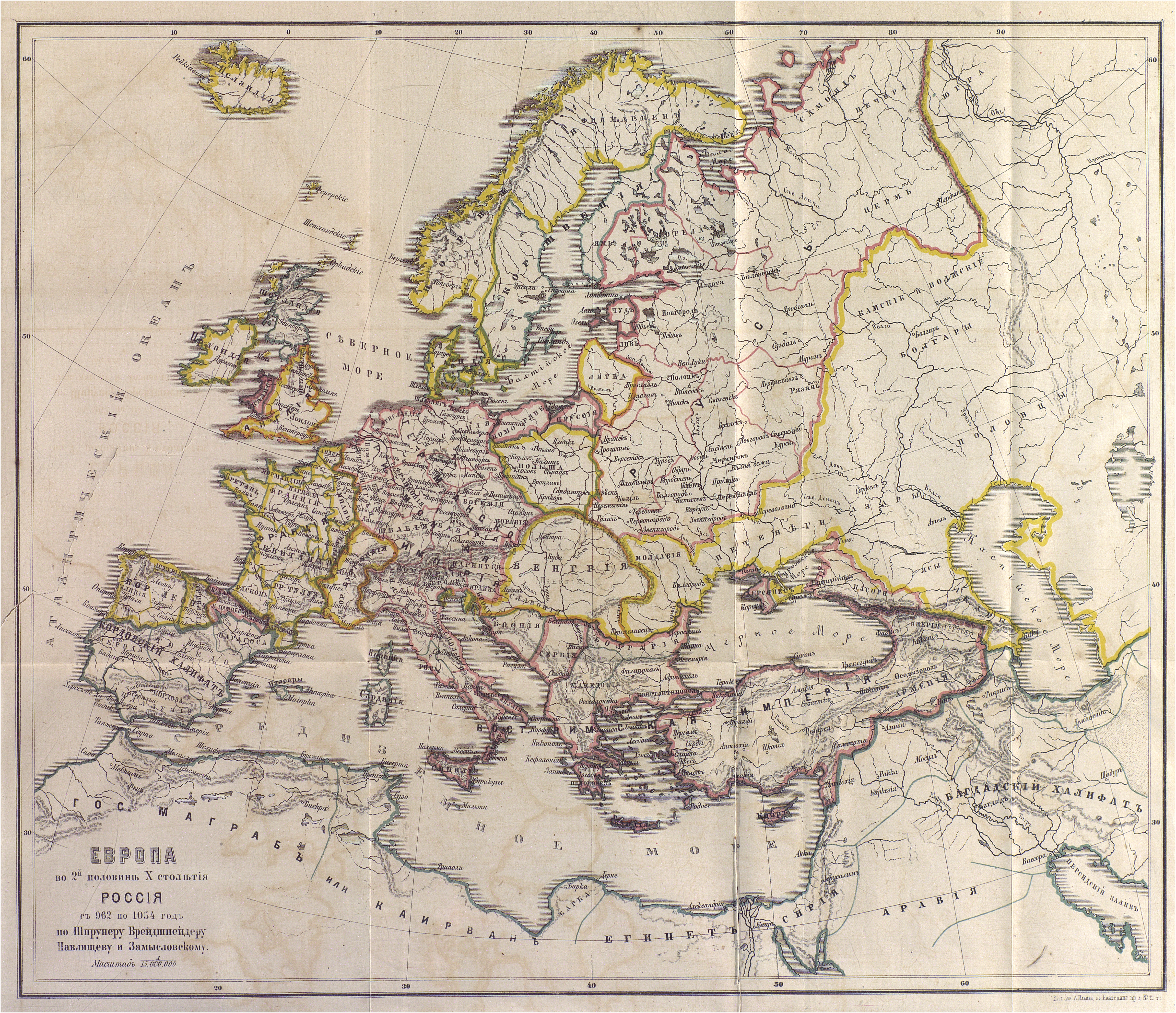 Карта Европы во 2-ой половине X столетия, Россия c 962 по 1054 год по Шпрунеру, Бредшнейдеру, Крузе, Павлищеву и Замысловскому