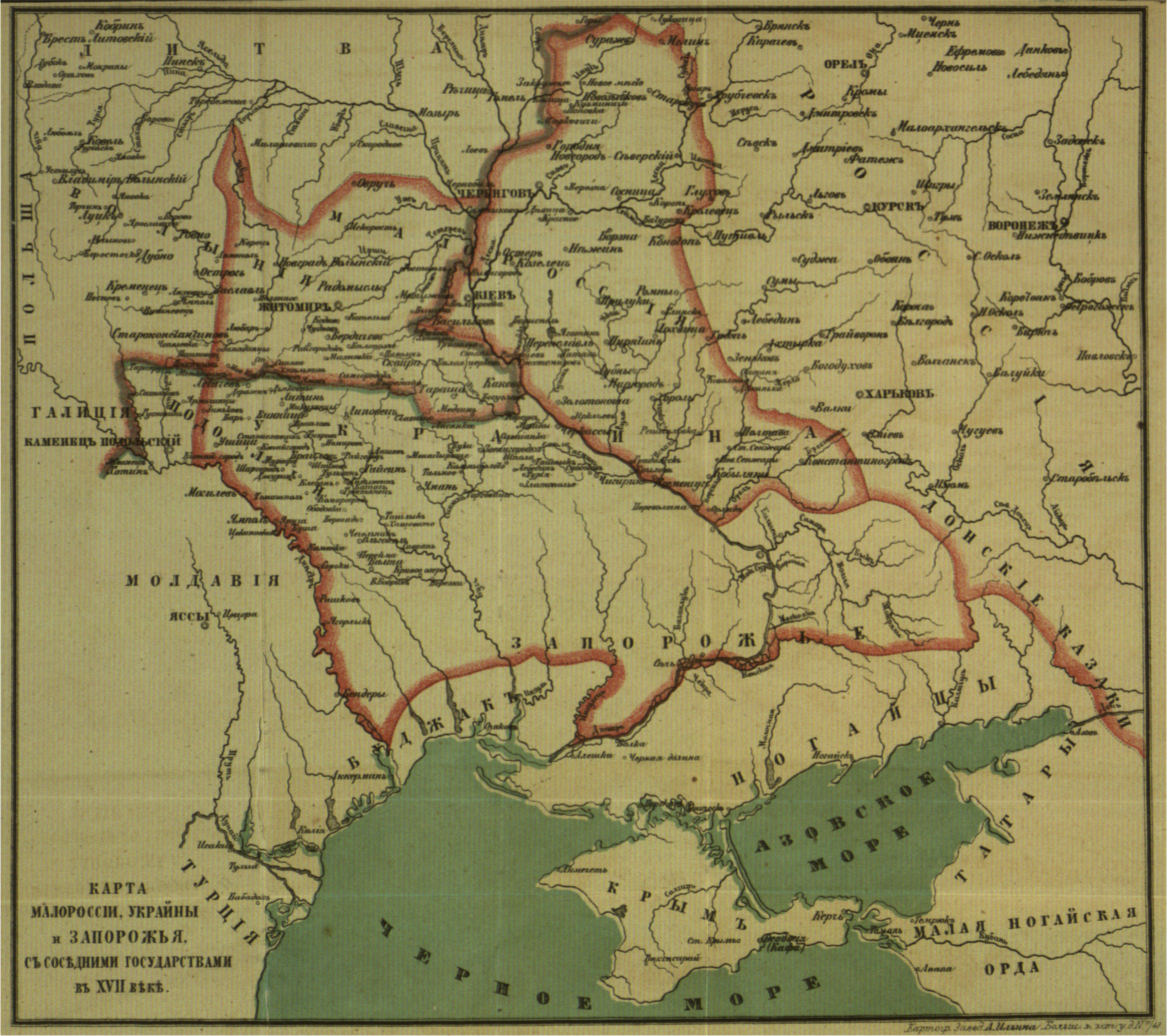 Карта Малороссии, Украины и Запорожья с соседними государствами в XVII веке.
