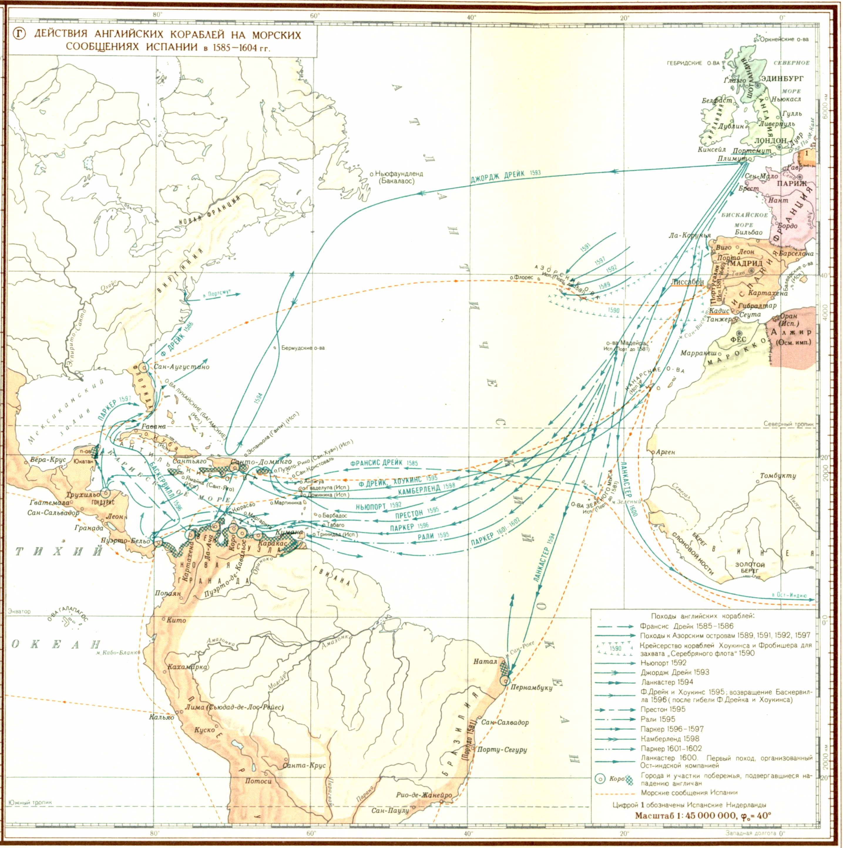 Войны Англии с Испанией и Голландией в XVI-XVII вв. Нидерландская буржуазная революция 1566-1609 гг. Англо-испанская война 1585-1604 гг. (Г) Действия английских кораблей на морских сообщениях Испании в 1585-1604 гг.