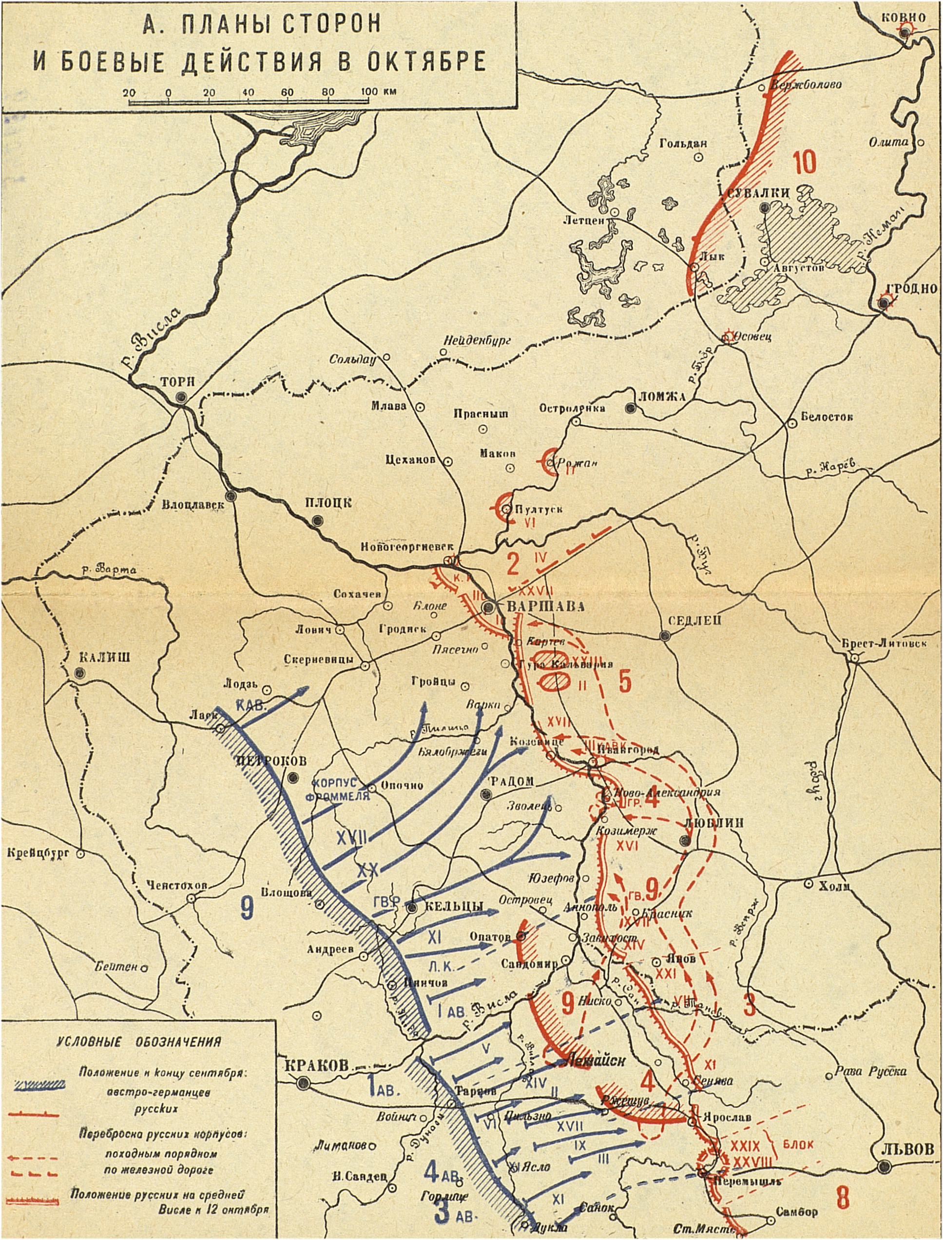 Кампания 1914 года. Русский театр. Операции на реках Висле и Сане. А.Планы сторон и боевые действия в октябре