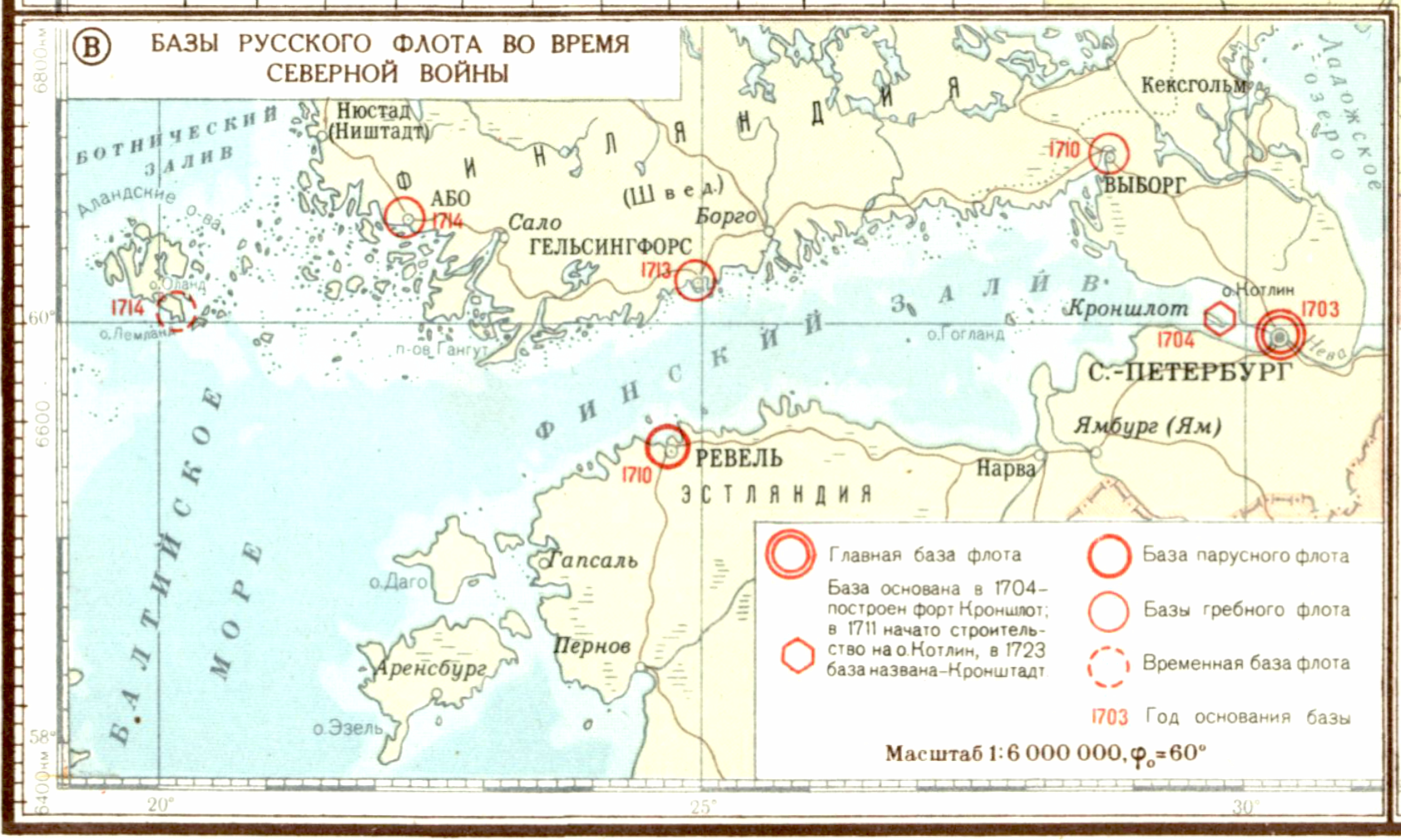 Северная война 1700-1721 гг. Общий ход. (В) Базы русского флота во время Северной войны.