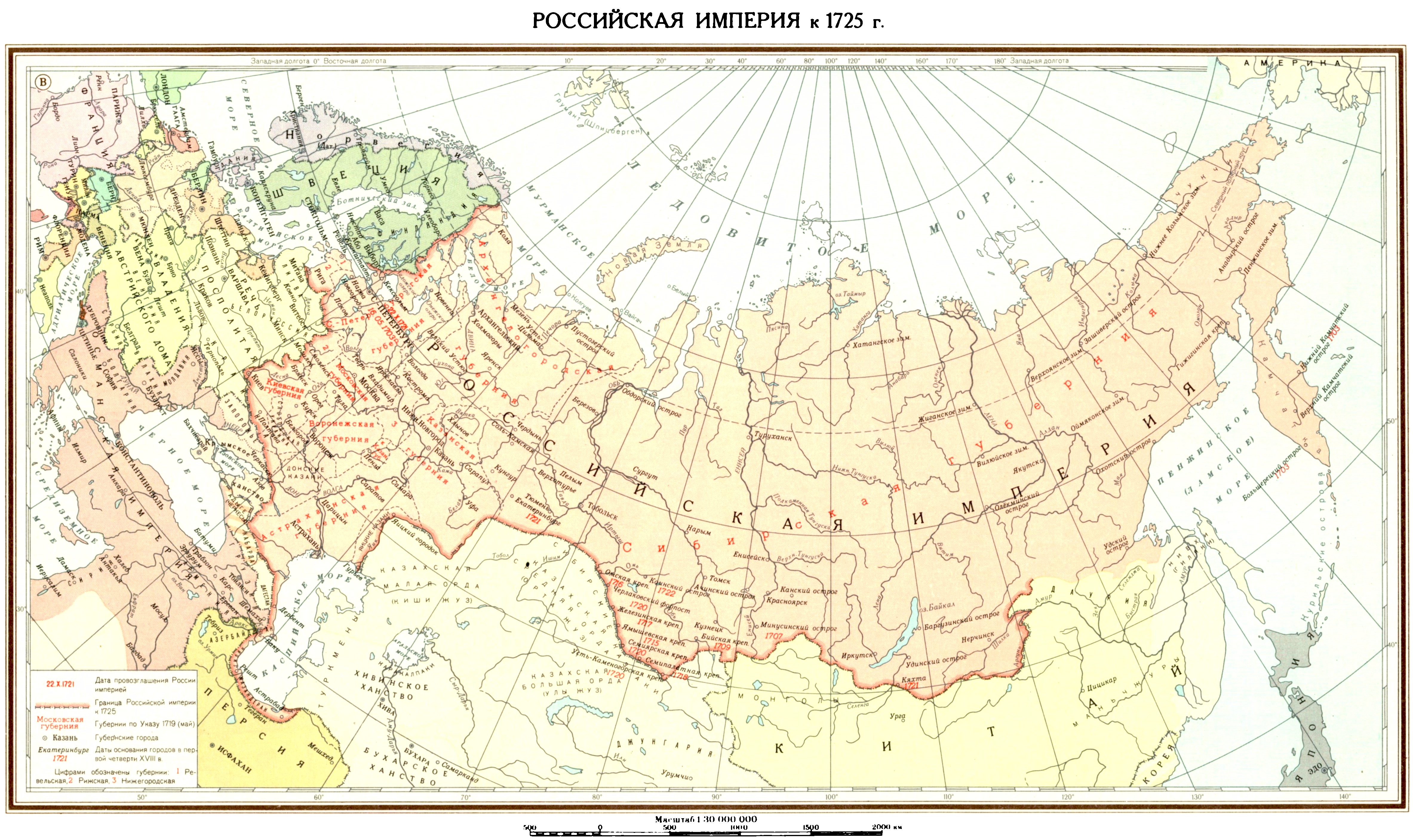 Российская империя к 1725 г.
