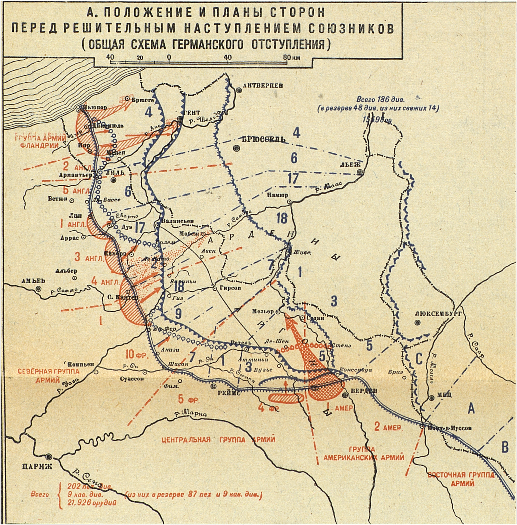 Конец мировой войны 1914-1918 годов. Французский и Балканский театры. А.Положение и планы сторон перед решительным наступлением союзников (общая схема германского отступления)