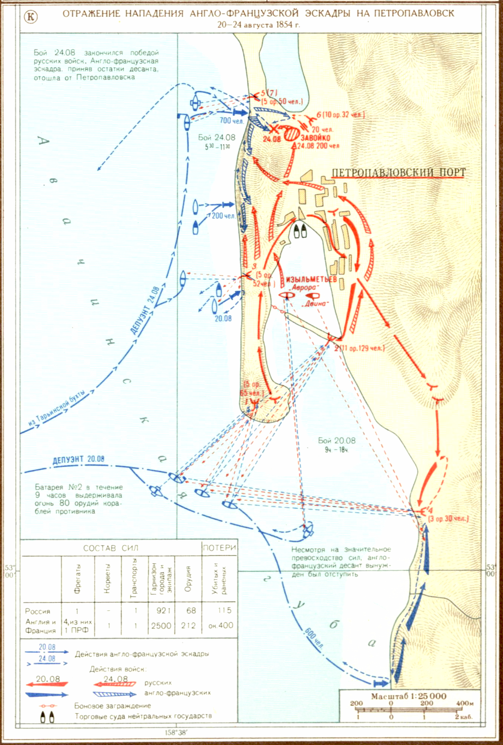 Крымская война 1853-1856 гг. Общий ход.(К) Отражение нападения англо-французской эскадры на Петропавловск 20-24 августа 1854 г.
