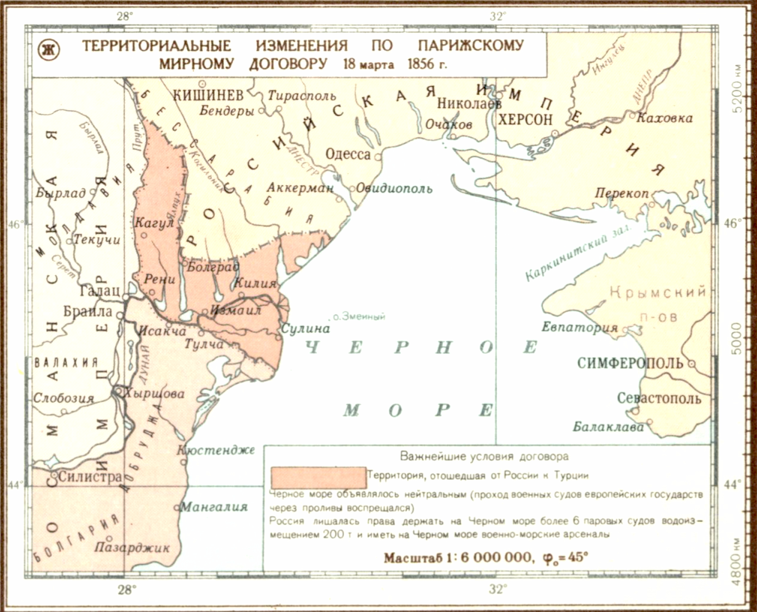 Территориальные изменения по Парижскому мирному договору 18 марта 1856 года