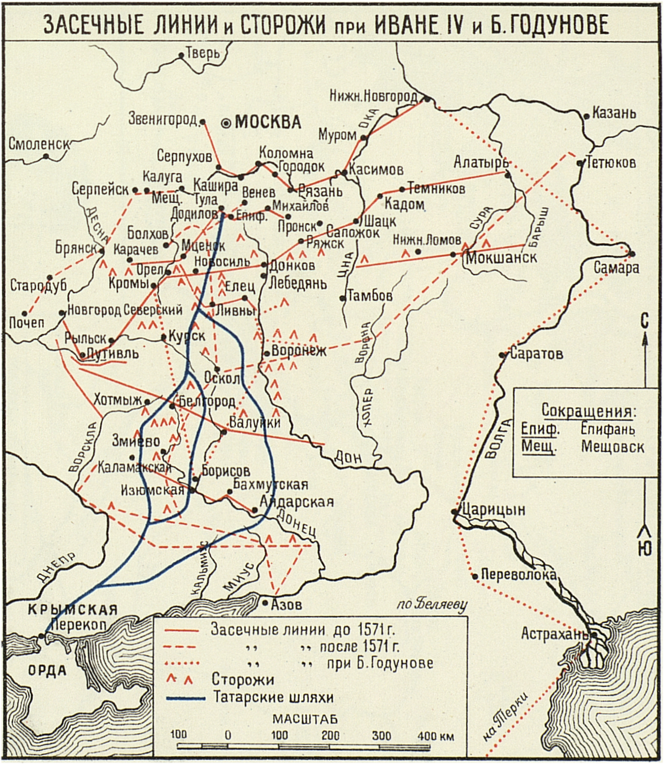 Засечные линии и сторожи при Иване IV и Борисе Годунове