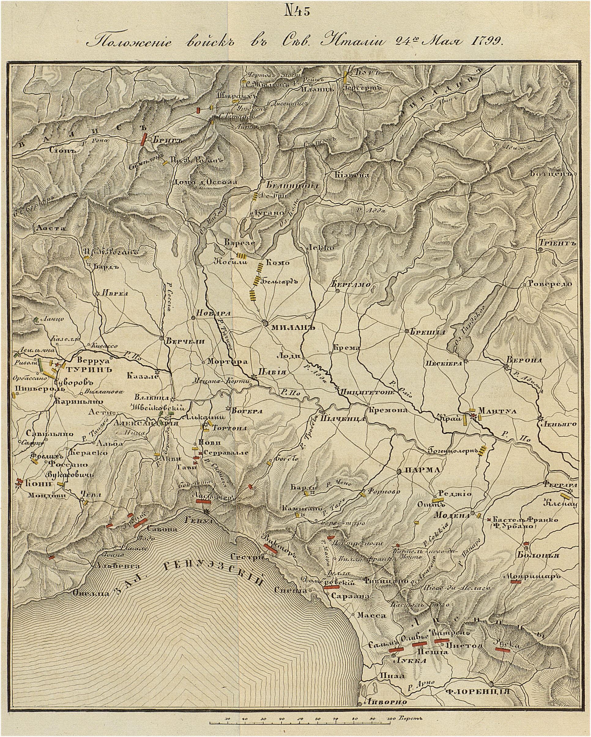 Положение войск в Северной Италии 24 мая 1799 года