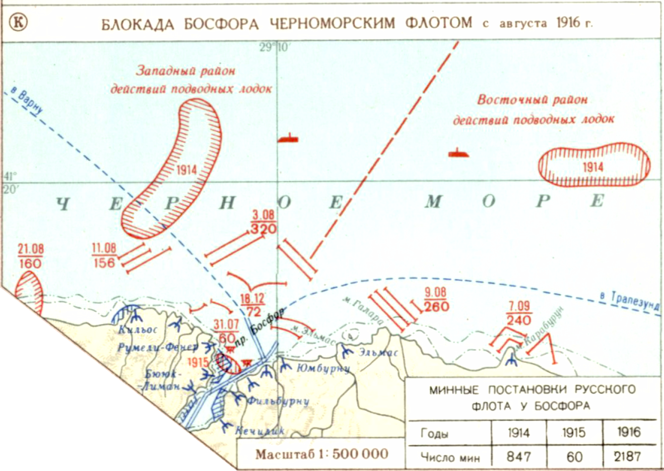 Первая мировая империалистическая война 1914-1918 гг. Кампания 1916 года. (К) Блокада Босфора Черноморским флотом с августа 1916 г.