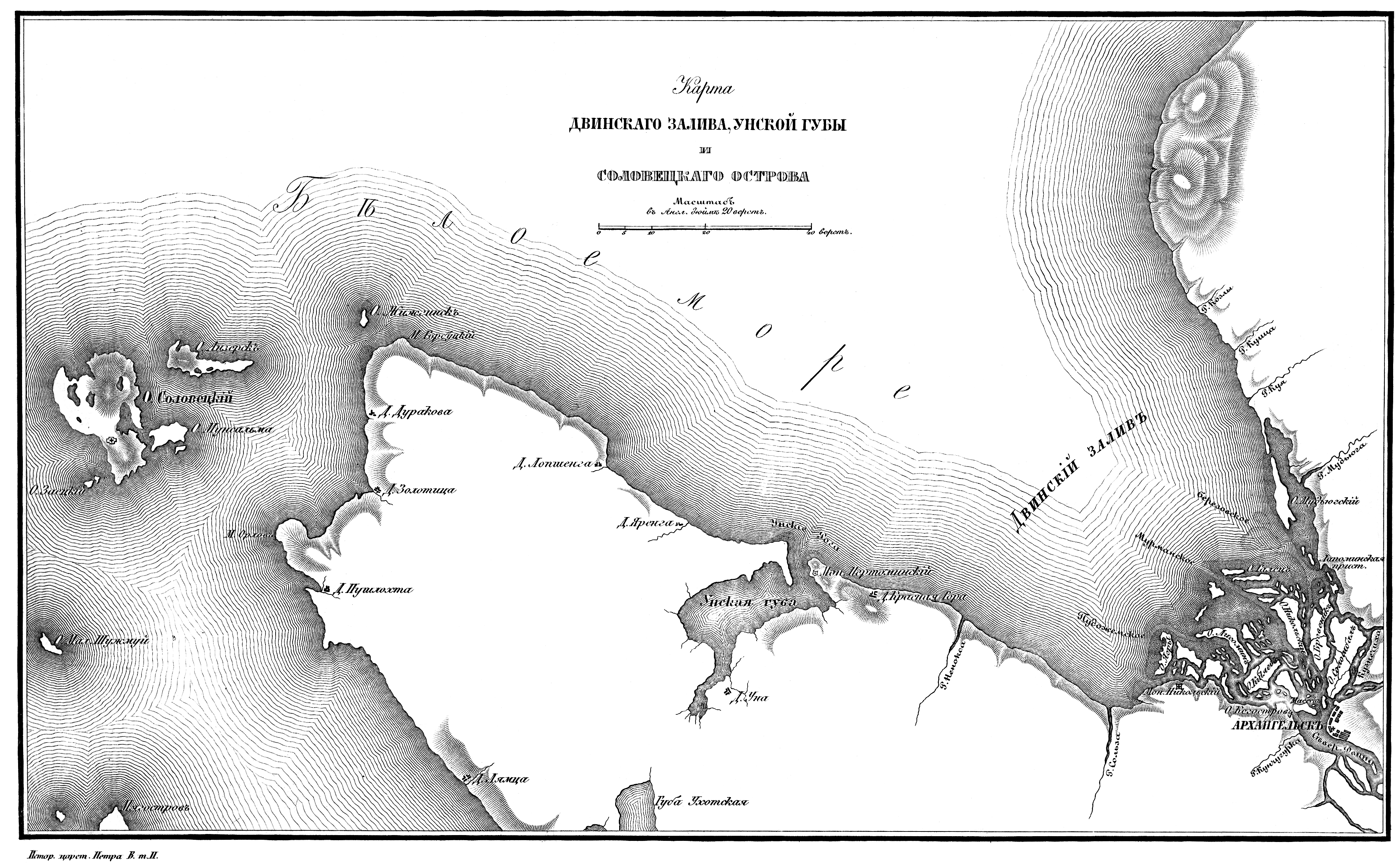 Карта Двинского залива, Унской губы и Соловецкого острова.