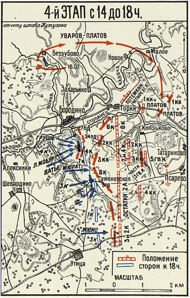 Четвертый этап Бородинского сражения с 14 до 18 часов
