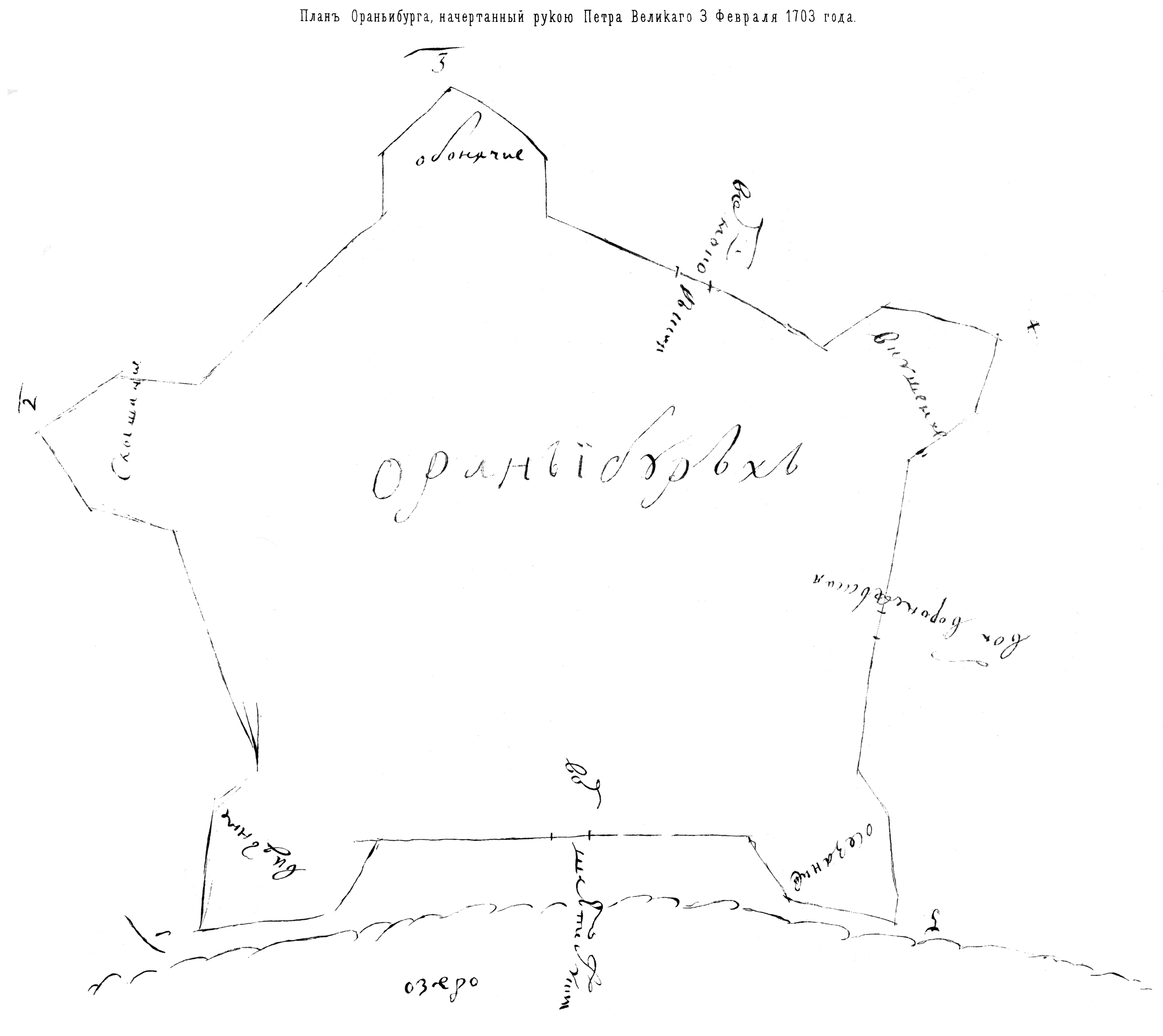План Оранибурга, начертанный рукой Петра Великого 3 февраля 1703 года.