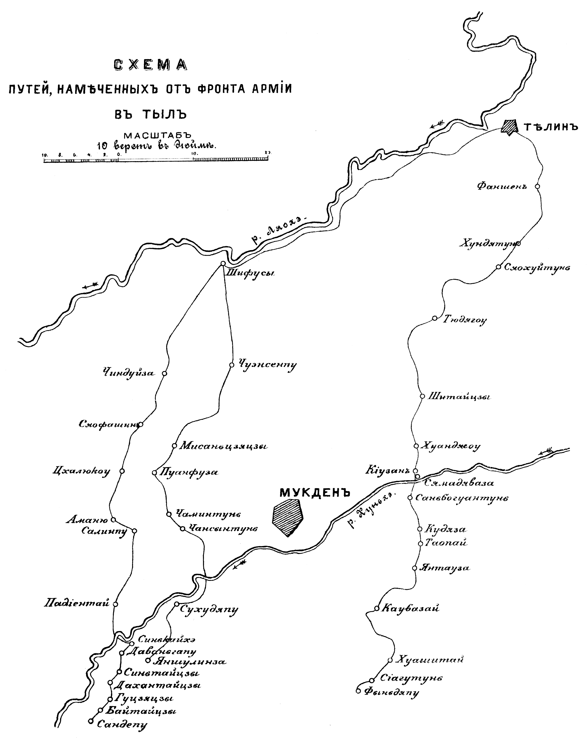 Пути, намеченные от фронта армии в тыл