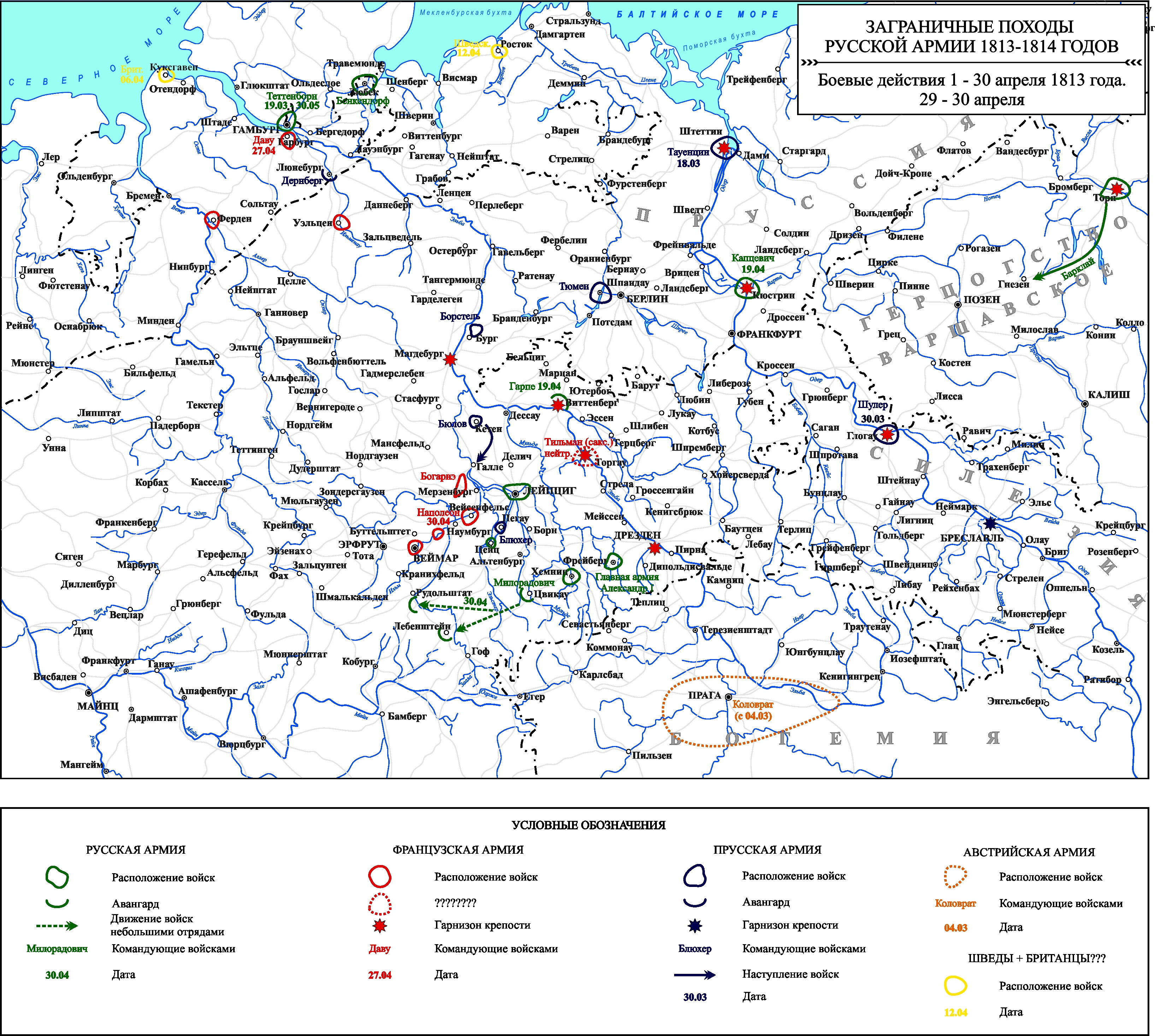 Заграничные походы Русской армии 1813-1814 гг. Положение на 21 апреля 1813 г.