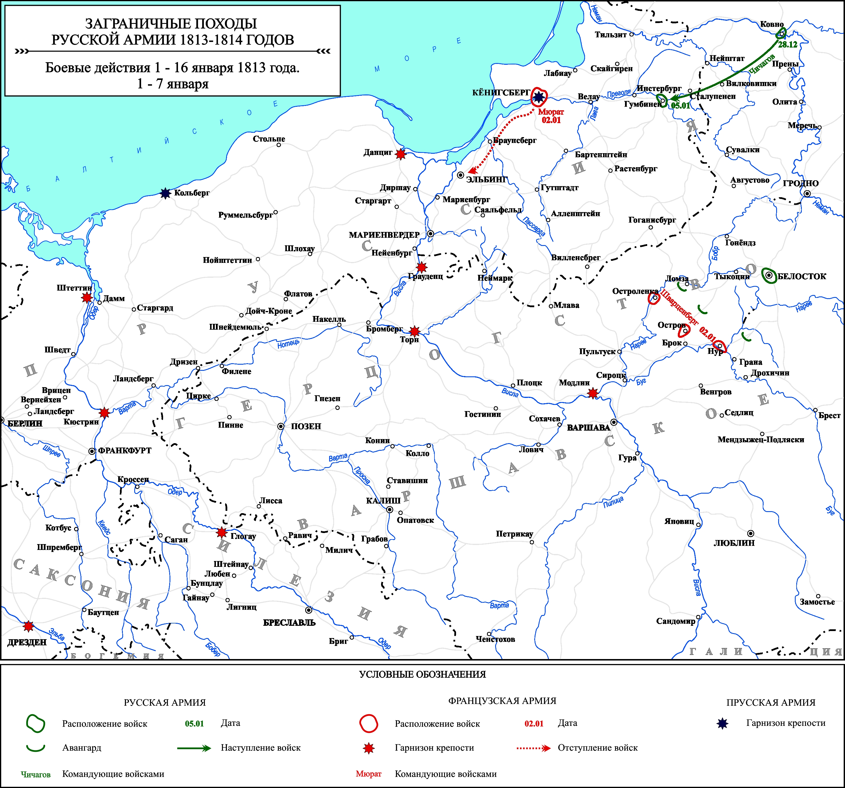 Заграничные походы Русской армии 1813-1814 гг. Боевые действия 1-7 января 1813 г.
